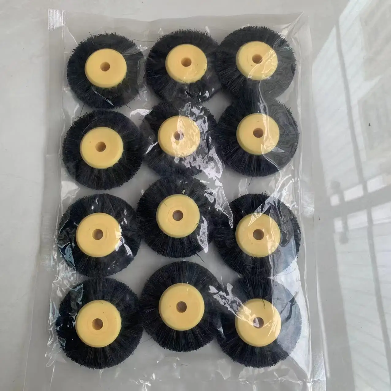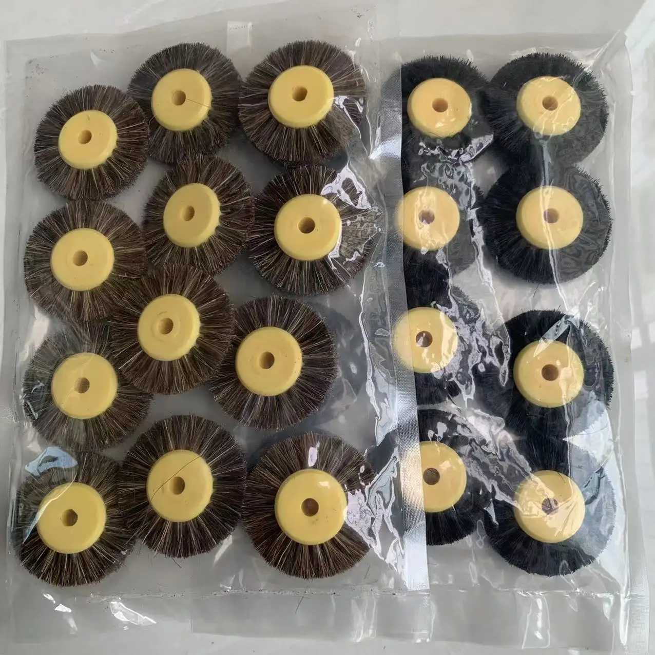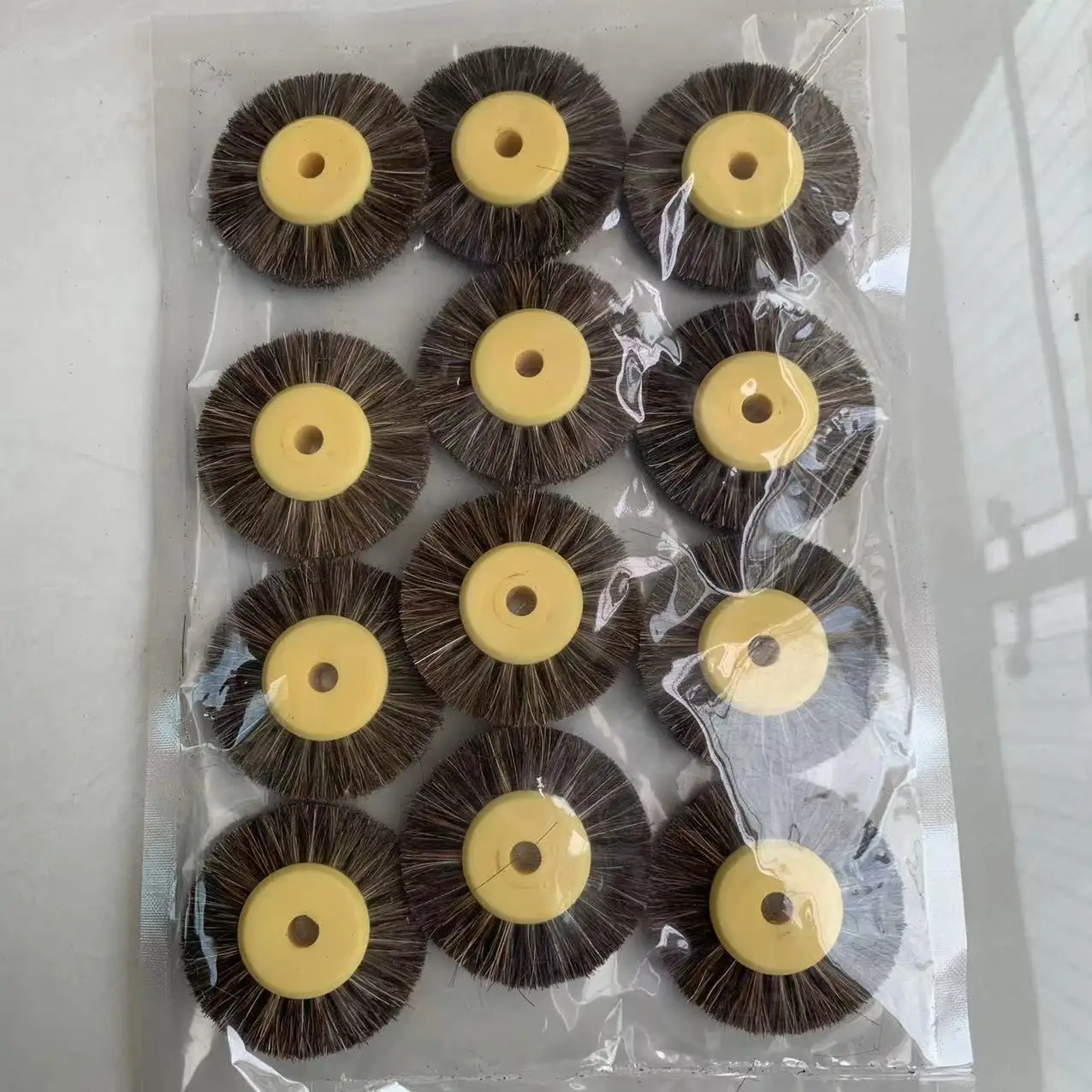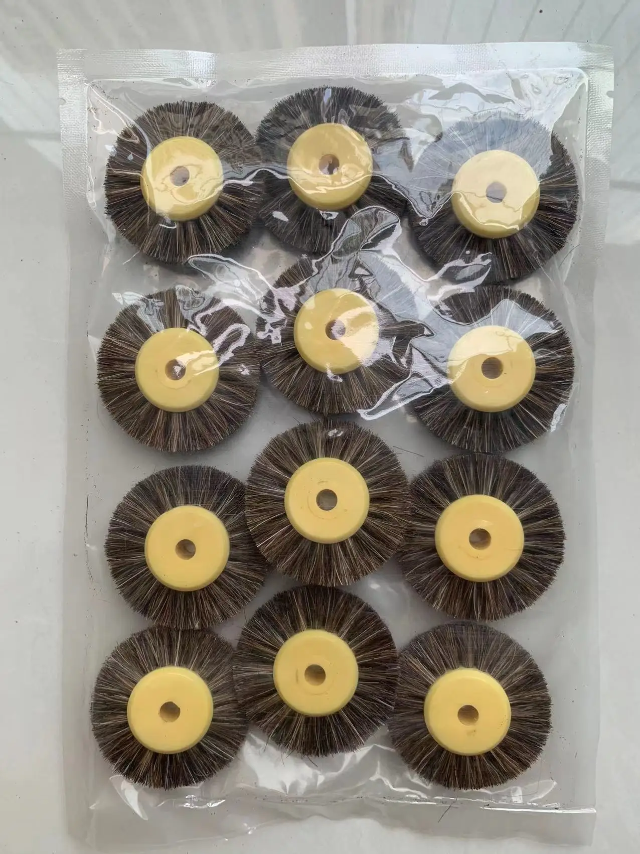 12 шт., 55 мм, полировальная щетка, черная, коричневая щетина, абразивная щетка для полировки с желтым пластиковым центром, ювелирные инструменты
