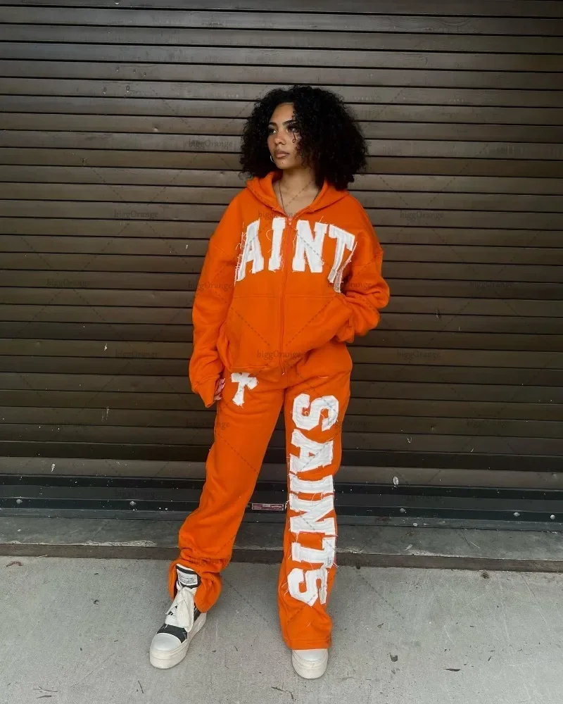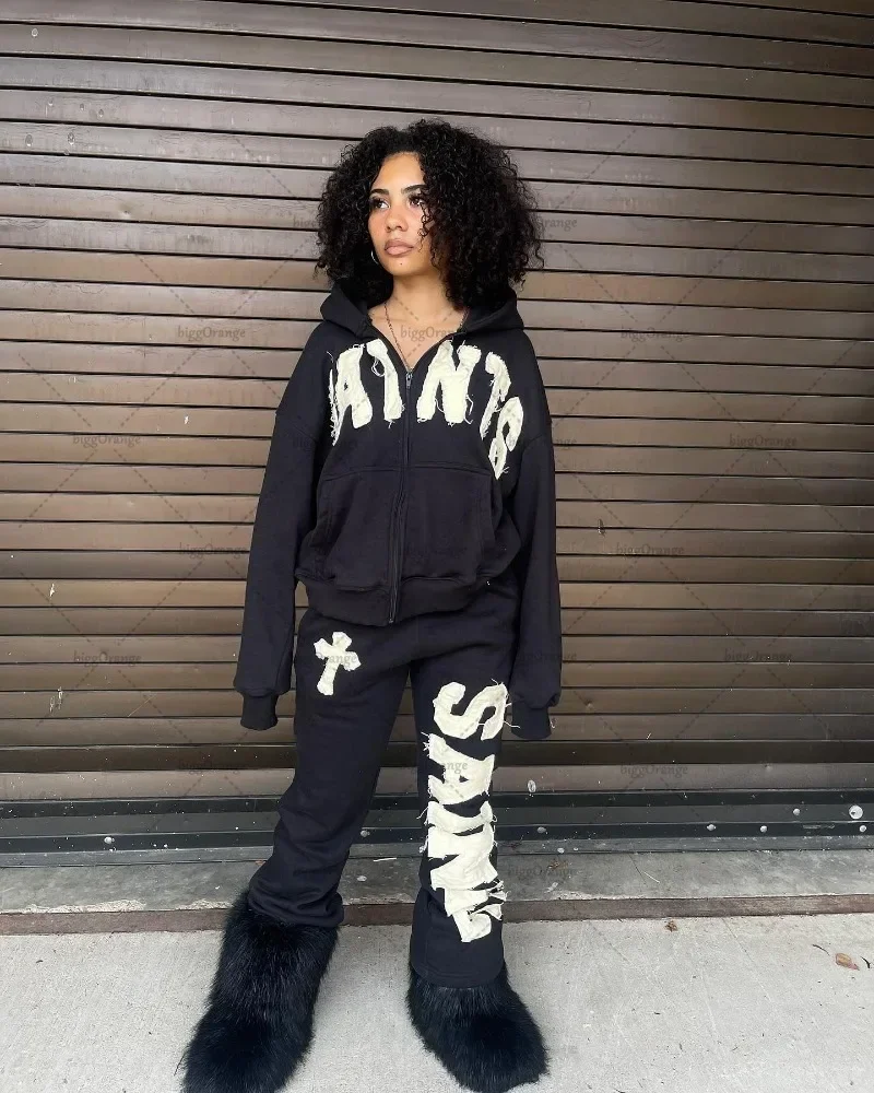 2024 модные Универсальные трикотажные брюки с вышивкой в американском стиле хип-