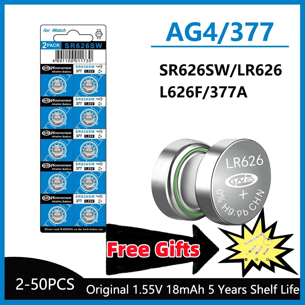 5-50 шт. щелочная батарея высокой емкости SR626SW AG4 LR626 377A V377 1,5 В, батарейки-таблетки для часов для мини-игрушки-фонарика