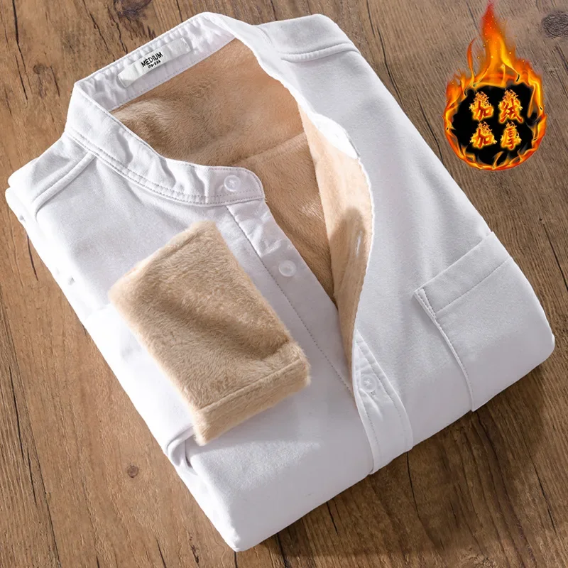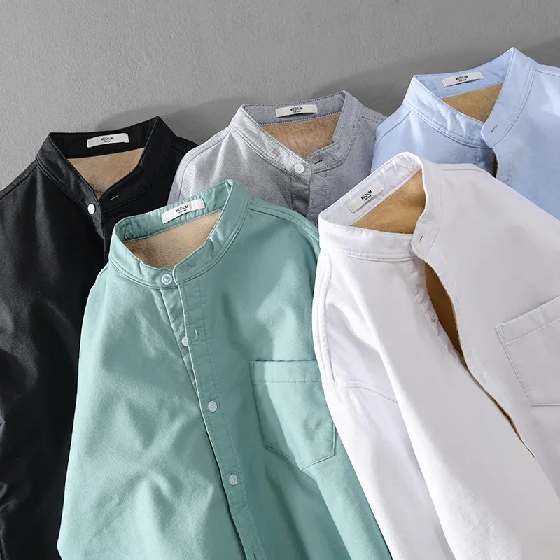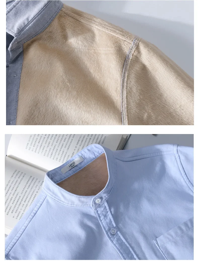 Простые мужские зимние рубашки, повседневные, сохраняющие тепло, мужские рубашки, однотонные оксфордские флисовые топы с воротником-стойкой, утепленная рубашка в корейском стиле