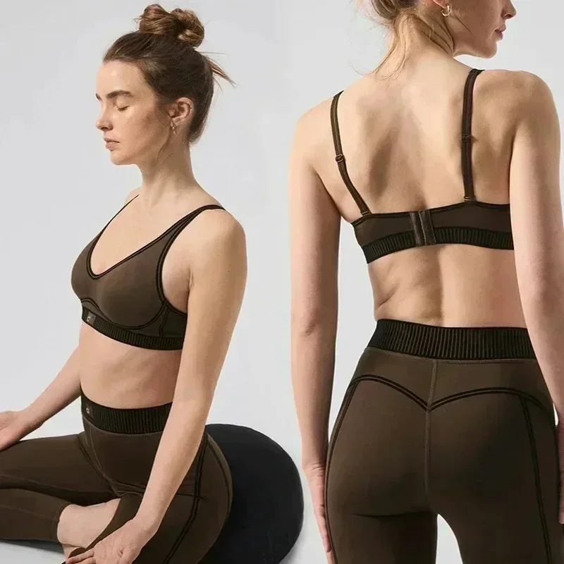 Спортивный комплект для йоги, бюстгальтер с подкладкой, высококачественный флоки
