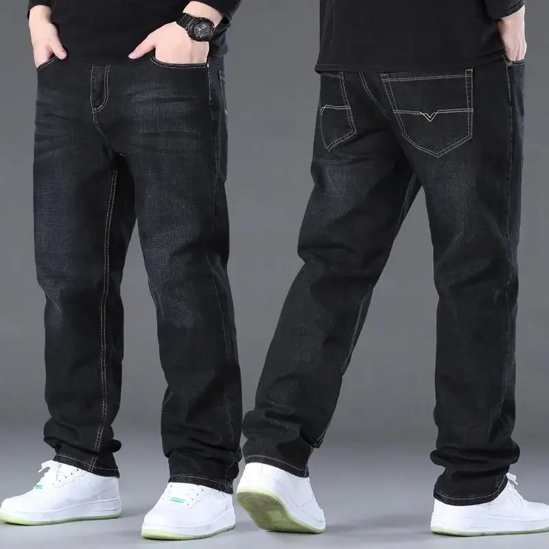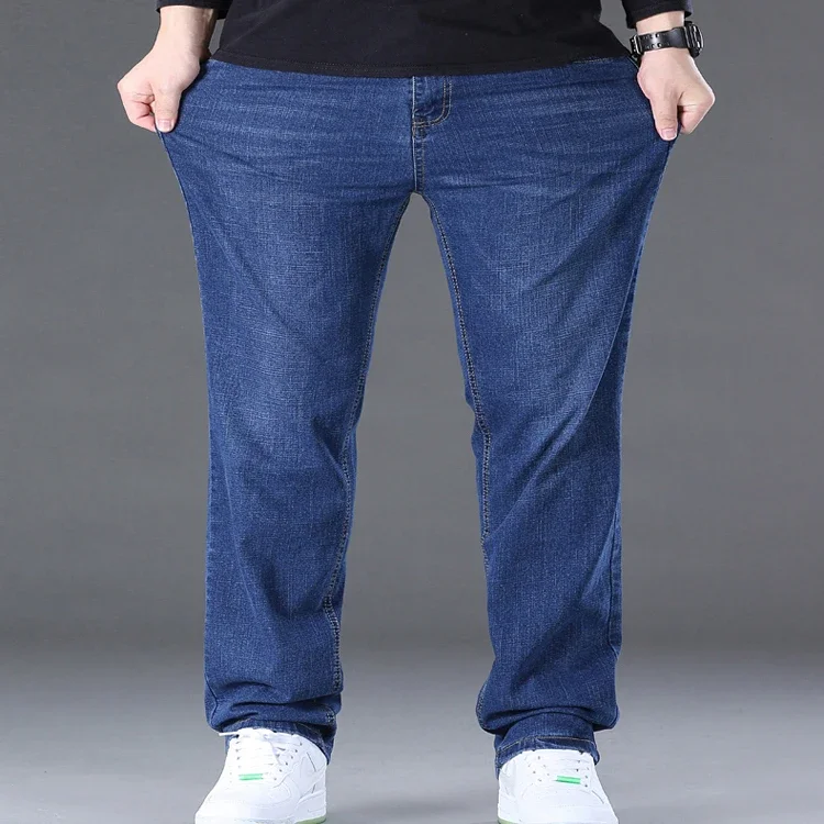 Мужские джинсы большого размера, эластичная джинсовая ткань, брюки большого размера для джинсов 45-150 кг, Hombre, широкие джинсы Pantalon Homme