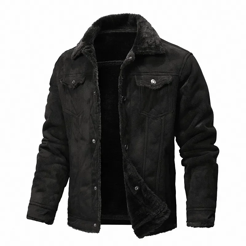 Зимнее мужское замшевое кожаное пальто, высококачественная мужская утепленная теплая куртка, молодежное модное повседневное пальто, мужская одежда, мужская кожаная куртка