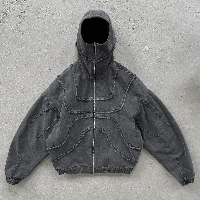 Джинсовая куртка Y2K в американском стиле, готический винтажный тренд, уличная одежда унисекс, уличная одежда в стиле панк, большая толстовка на молнии для отдыха
