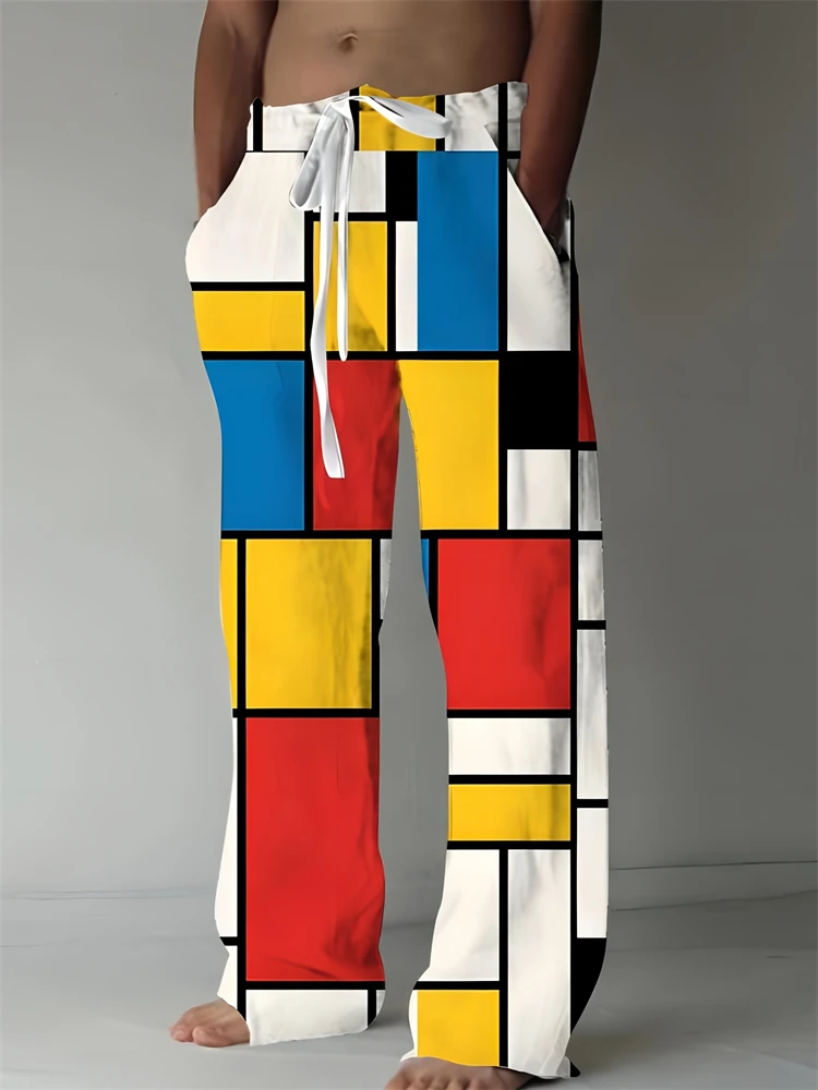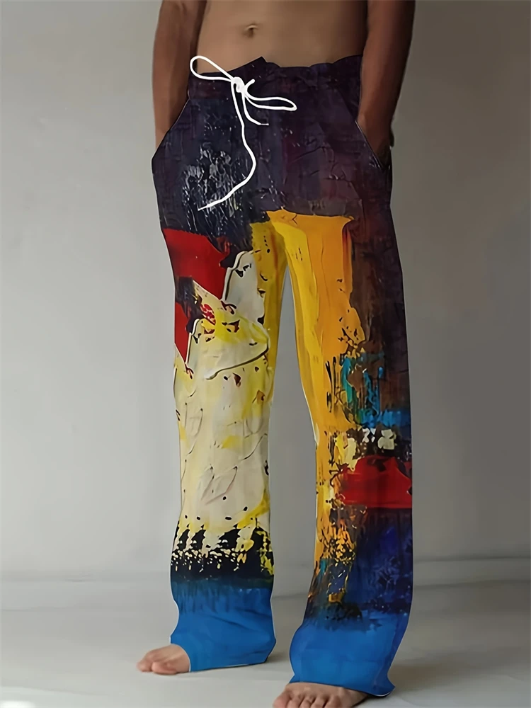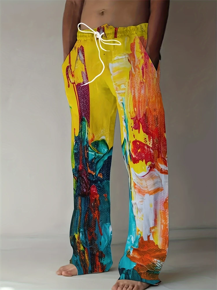 Новинка весны и лета 2024, длинные мужские спортивные штаны с завязками в стиле граффити, пляжные брюки с 3D принтом, мужские повседневные брюки и грунтовые брюки