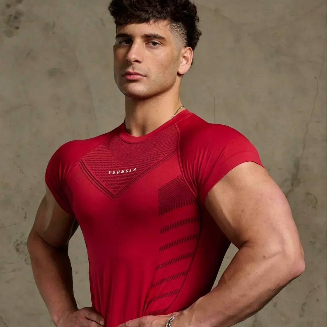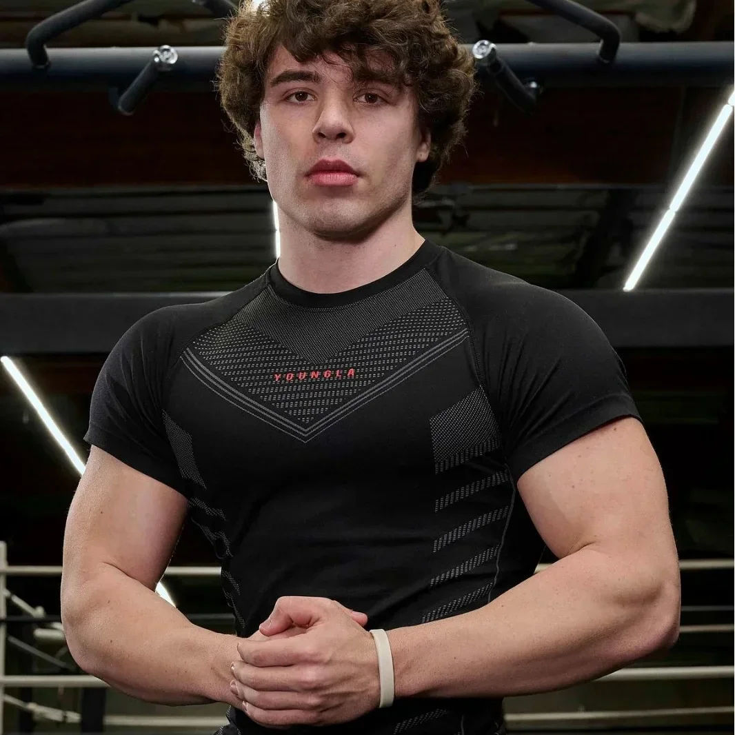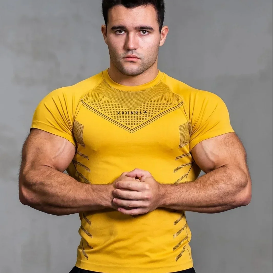 YOUNGLA американская мужская футболка для спорта и фитнеса, быстросохнущая эластичная одежда для фитнеса, одежда для бега на открытом воздухе, баскетбола