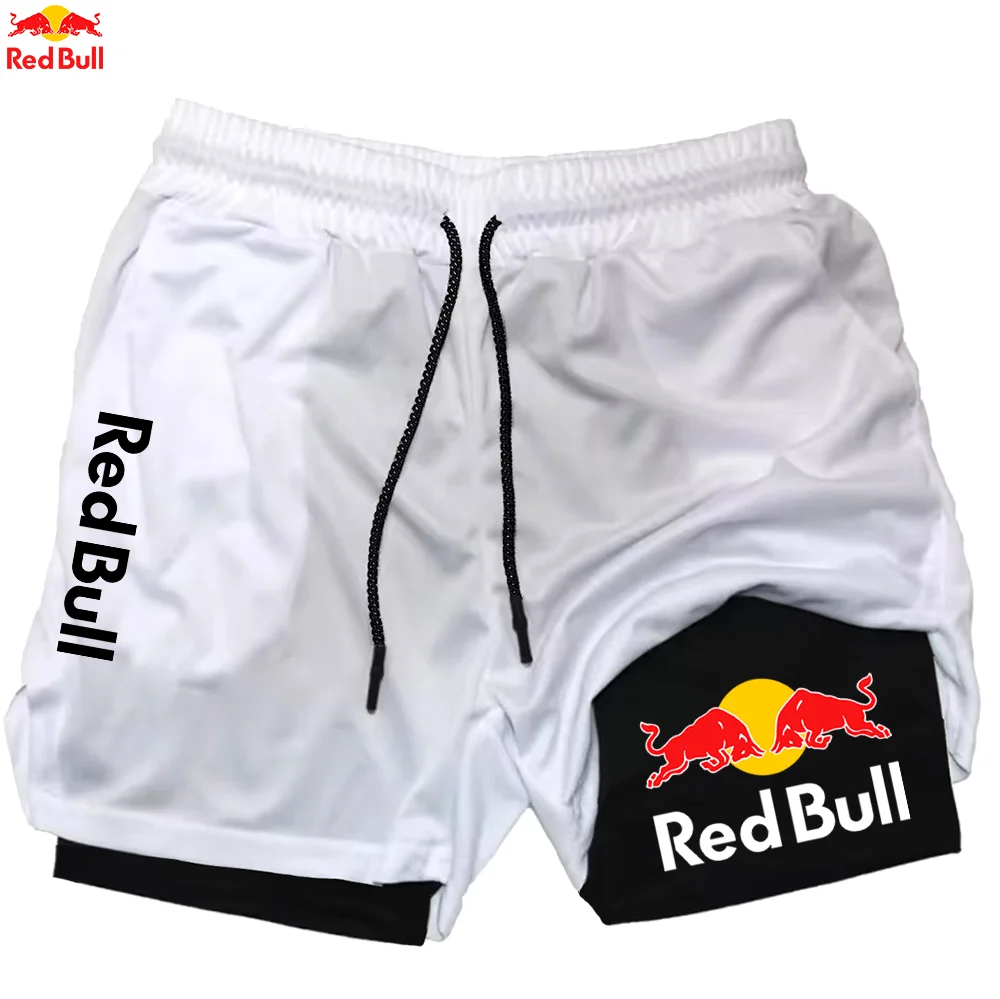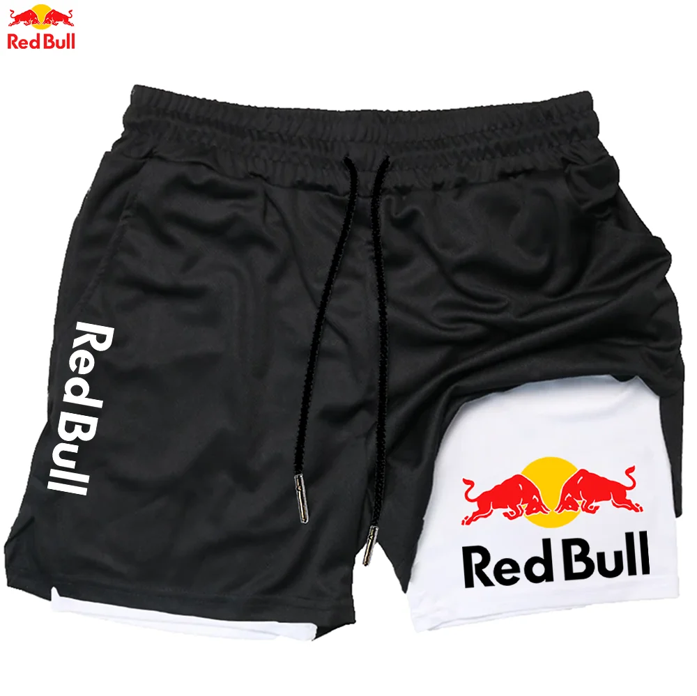 Red Bull Новейшие шорты для мужчин 2 в 1, шорты для бега, тренировок в тренажерном зале, фитнес-джоггеры, летние спортивные шорты для бега, шорты для тренировок