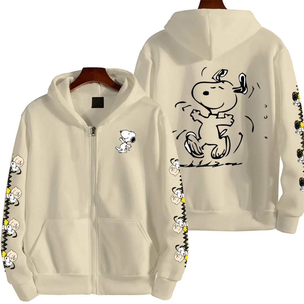 Мужская осенне-зимняя толстовка на молнии с милым арахисом Snoopy, женская уличная повседневная модная спортивная толстовка большого размера для пар