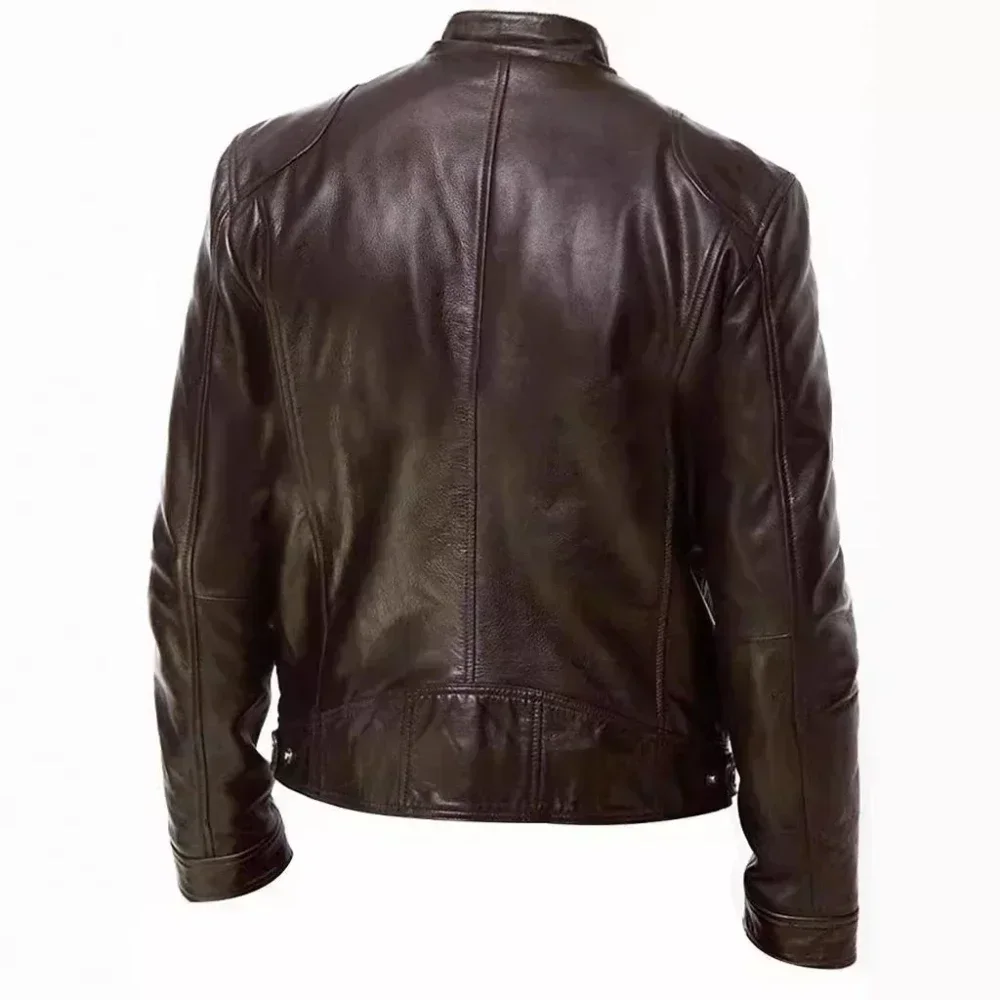 Кожаная мотоциклетная куртка 2025 года, мужская повседневная тонкая короткая куртка с воротником-стойкой, куртка из искусственной кожи, осенне-зимнее ветрозащитное кожаное пальто, мужской пиджак