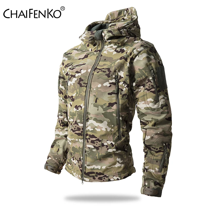 Lurker Shark Skin Soft Shell Тактическая куртка Мужская водонепроницаемая флисовая куртка с капюшоном Одежда для охоты Осенняя новая уличная камуфляжная куртка