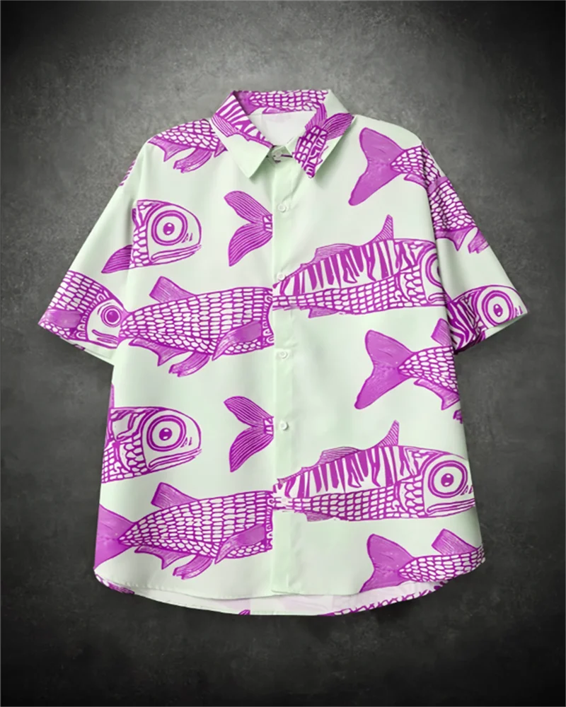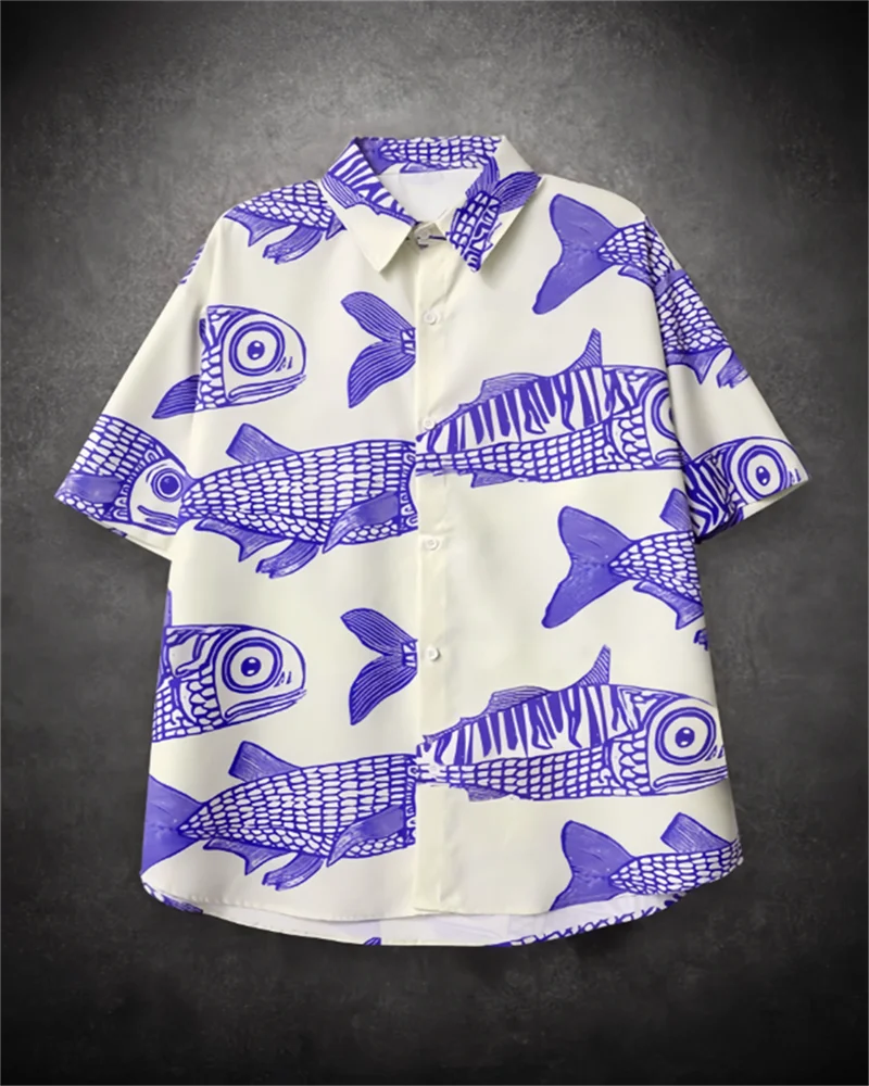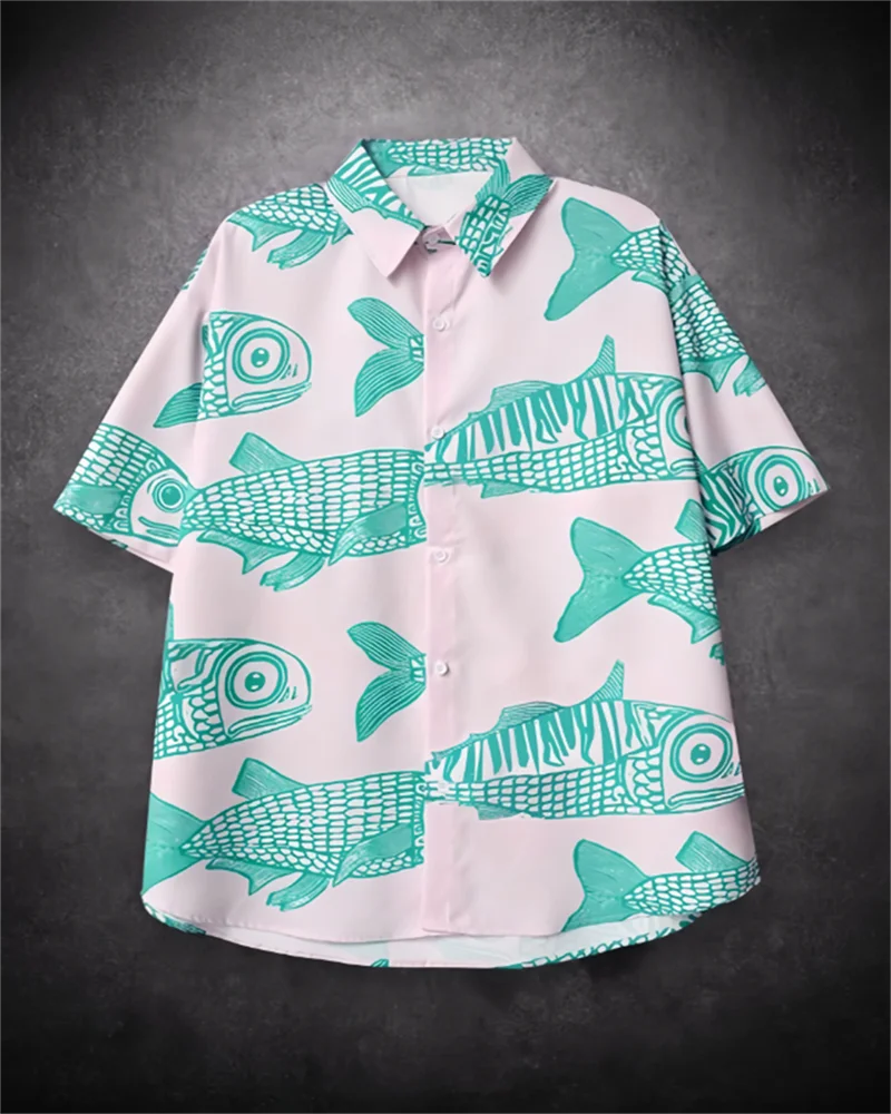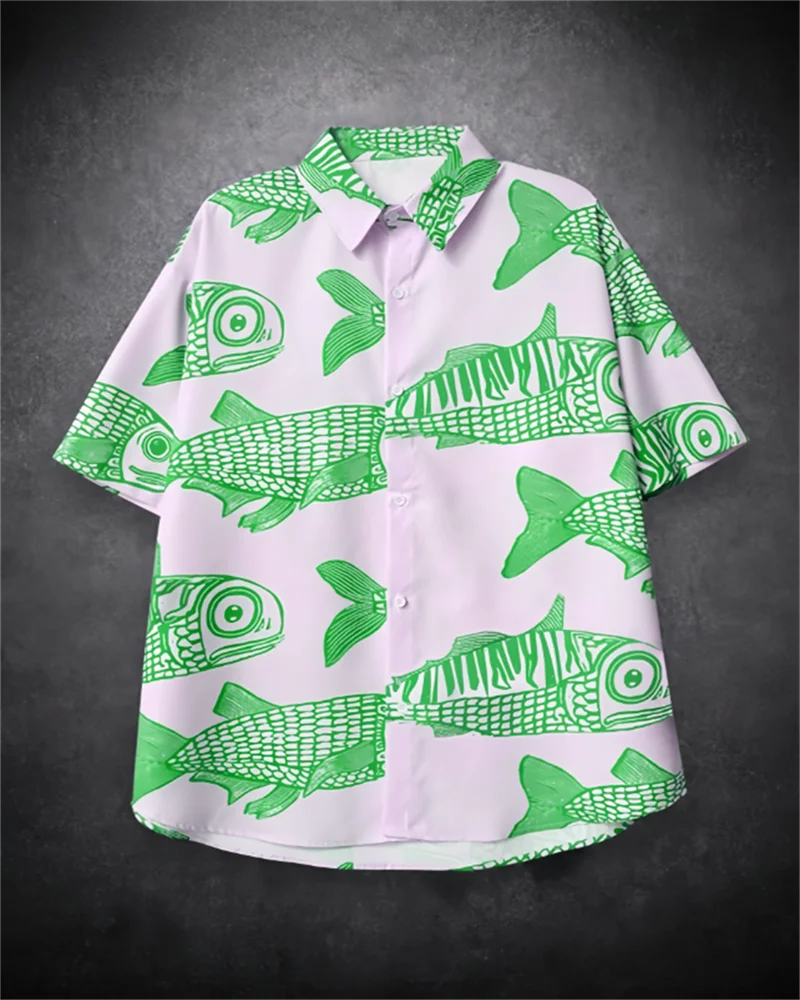 2025 Новая уличная модная рыба с 3D принтом, новая персонализированная мужская летняя повседневная рубашка из льна