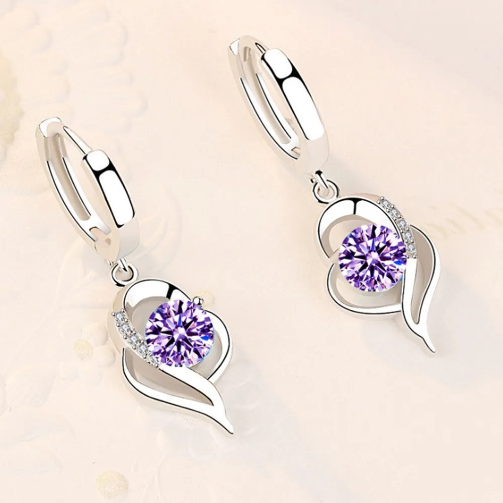 Стерлингового Серебра 925, новые женские модные ювелирные изделия, высокое качество, синие, розовые, белые, фиолетовые серьги с кристаллами циркона, хит продаж