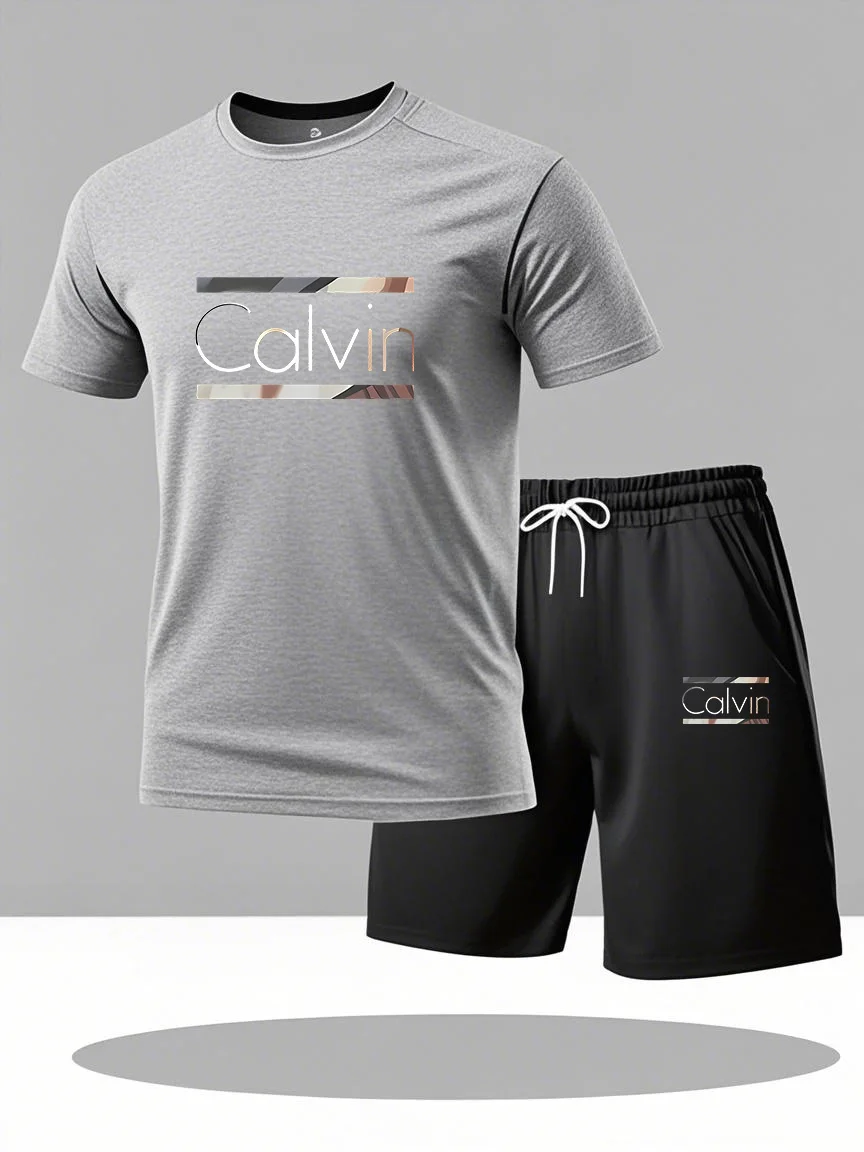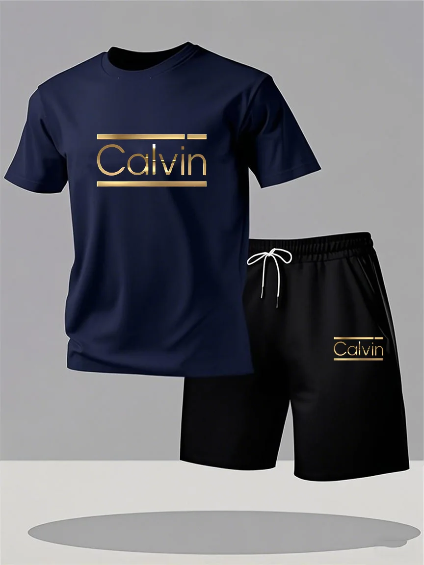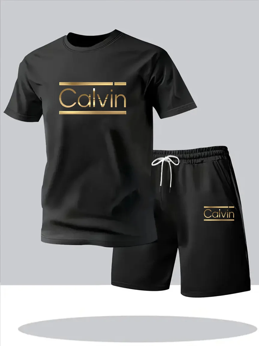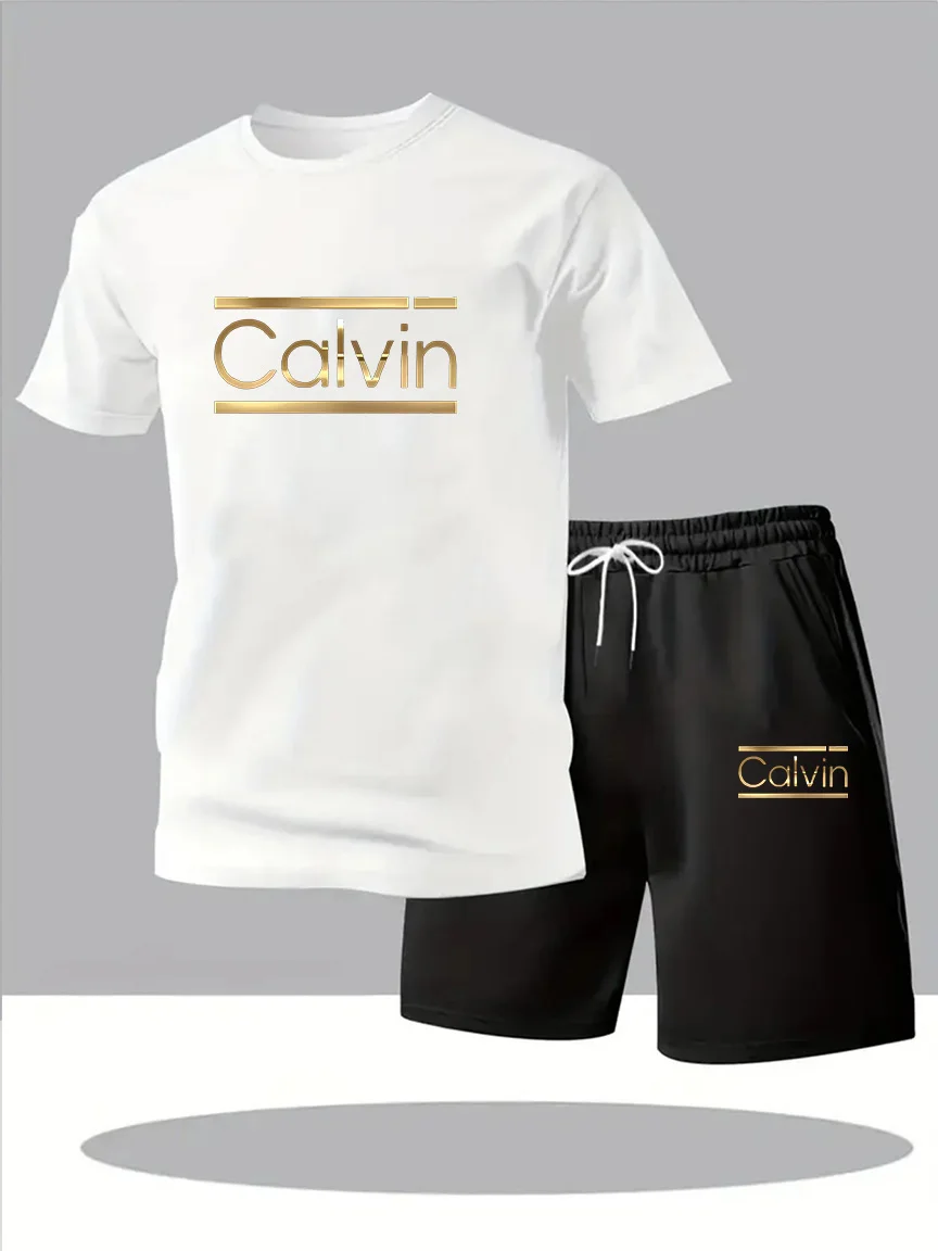 CALVIN летний мужской и женский новый повседневный спортивный костюм, модная дышащая уличная футболка с короткими рукавами + тренировочные шорты, комплект из двух предметов