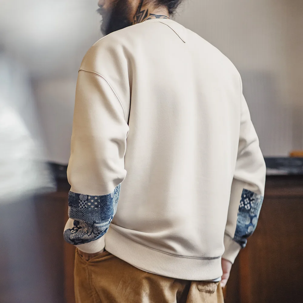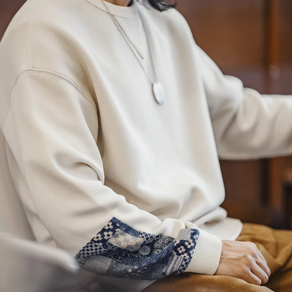 Винтажный лоскутный свитшот Maden Boro, повседневные топы с круглым вырезом, мужской классический пуловер на весну и осень, модная уличная одежда