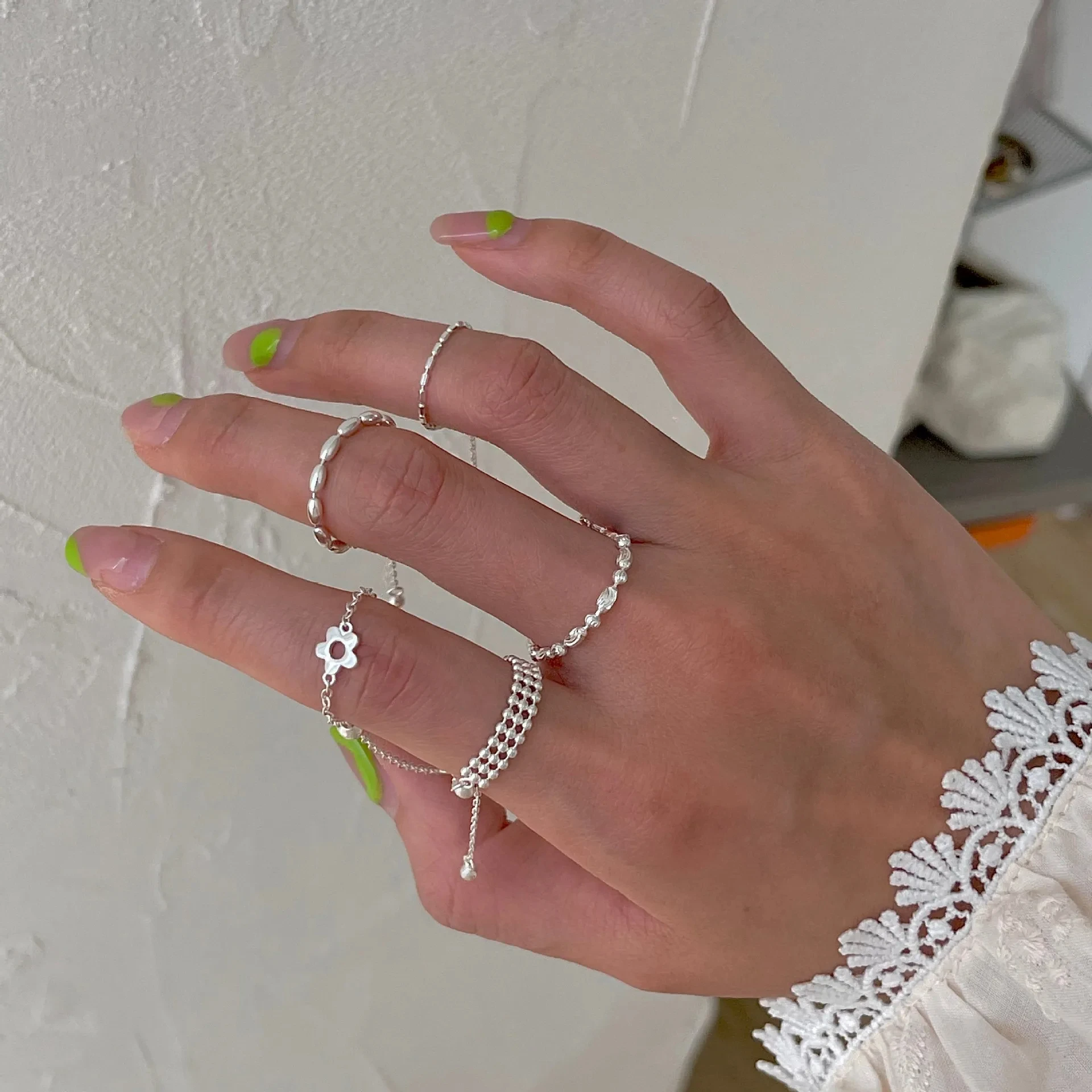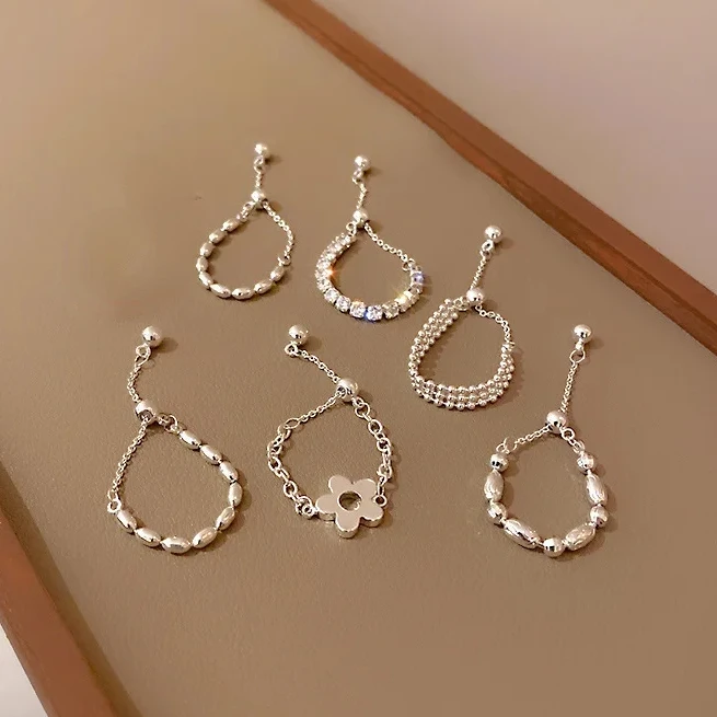 PONYKISS стерлингового серебра 925 пробы, цветочный шар, длинная цепочка с кисточками, регулируемое кольцо для женщин, кольцо на указательный палец, модные ювелирные изделия