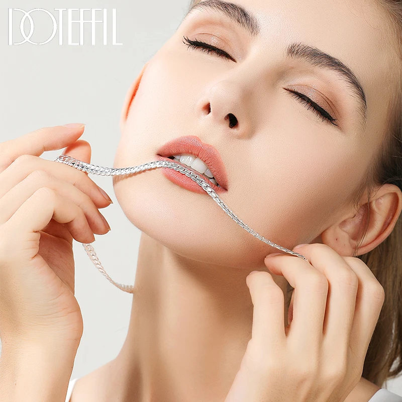 DOTEFFIL стерлингового серебра 925 пробы 6 мм боковая цепочка 16/18/20/22/24 дюймов ожерелье для женщин и мужчин модные свадебные украшения для помолвки подарки