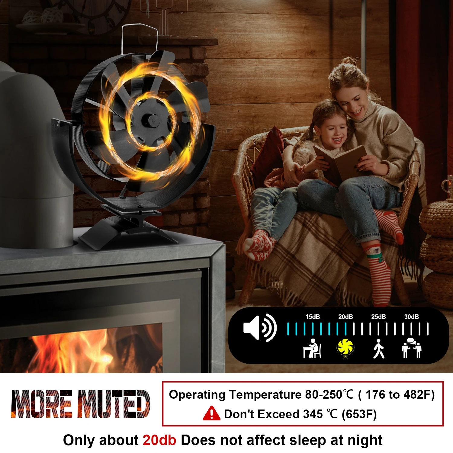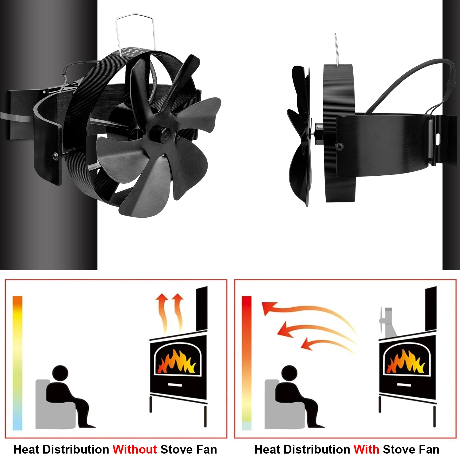 6-лопастной тепловой вентилятор для печи, вращающийся на 360° вентилятор для кам