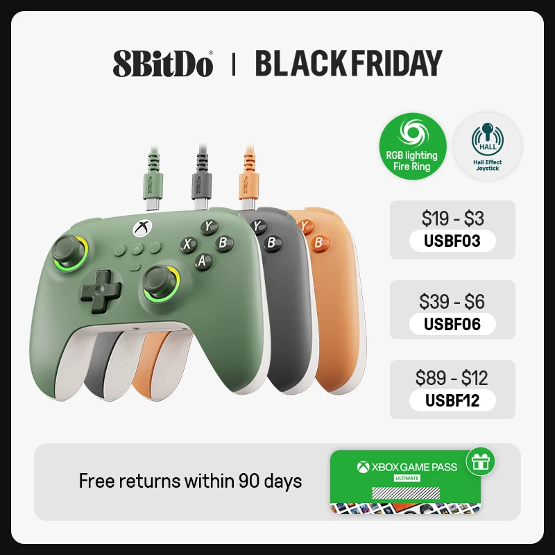 8bitdo Ultimate C проводной игровой контроллер для Xbox, RGB подсветка Fire Ring и джойстики с эффектом холла, Windows 10/11