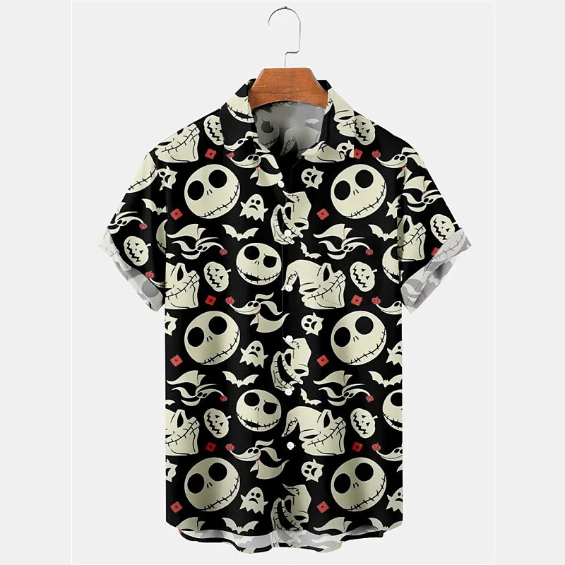 Мужская рубашка с коротким рукавом, стрейчевая рубашка с рисунком черепа
