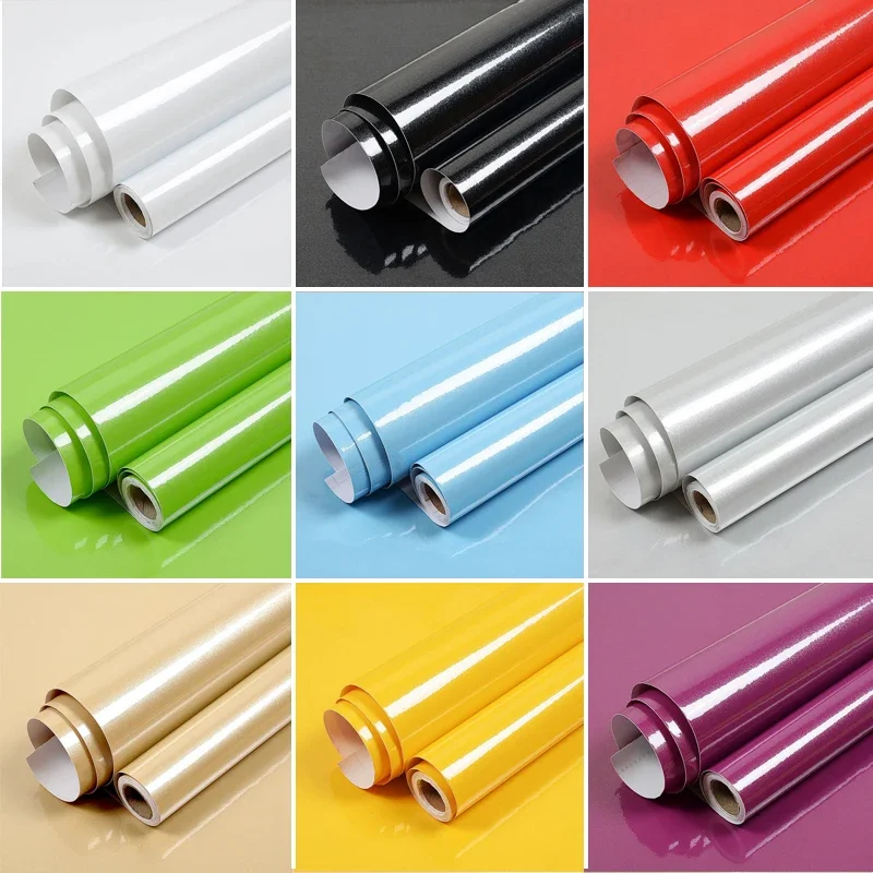 Виниловые настенные однотонные блестящие обои, самоклеящиеся декоративные наклейки на стену «сделай сам», кухонный шкаф, холодильник, настольная современная пленка