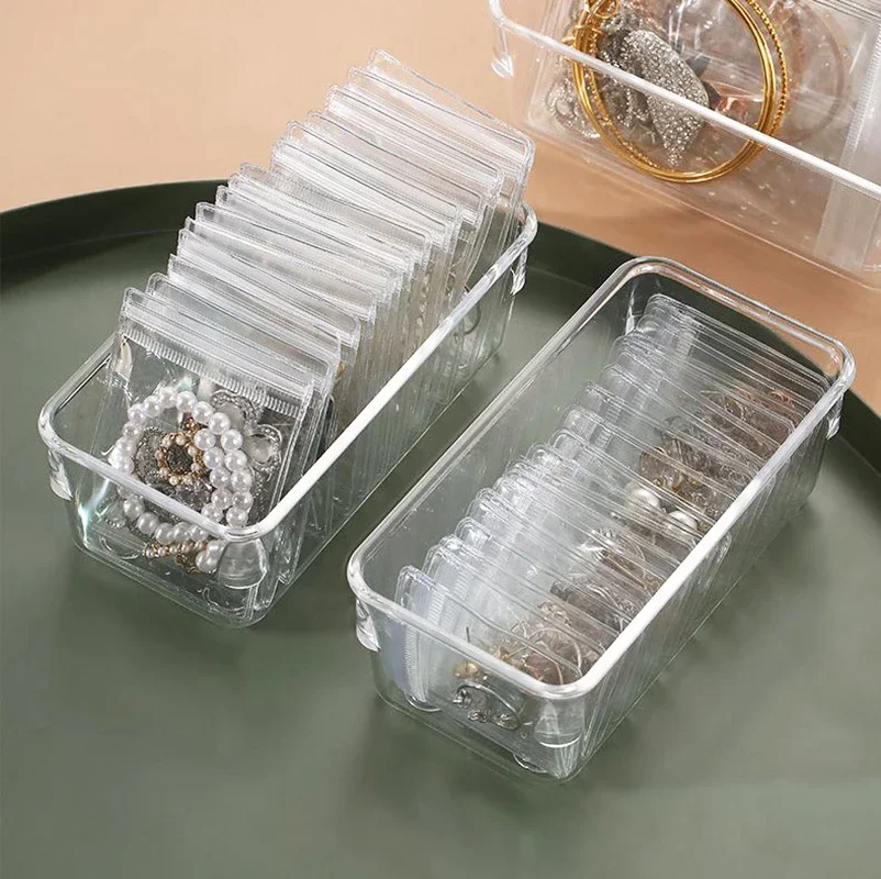 10 шт., прозрачный органайзер для ювелирных изделий из ПВХ, сумки, прозрачная антиокислительная сумка, держатель для хранения сережек и ожерелья, самозапечатывающаяся сумка