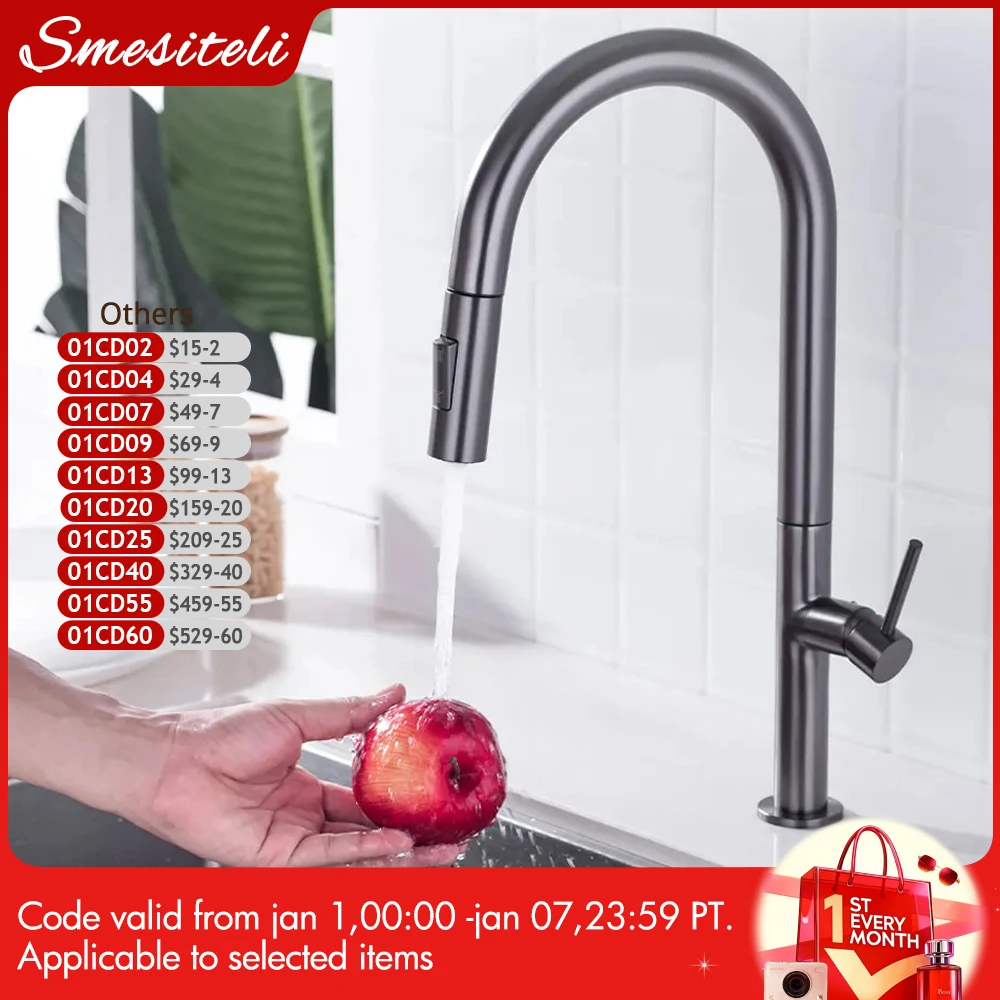 Металлический кухонный смеситель, вращающийся на 360 градусов, кухонный смеситель с выдвижным изливом, кухонный смеситель с одной ручкой, кран для раковины с горячей и холодной водой