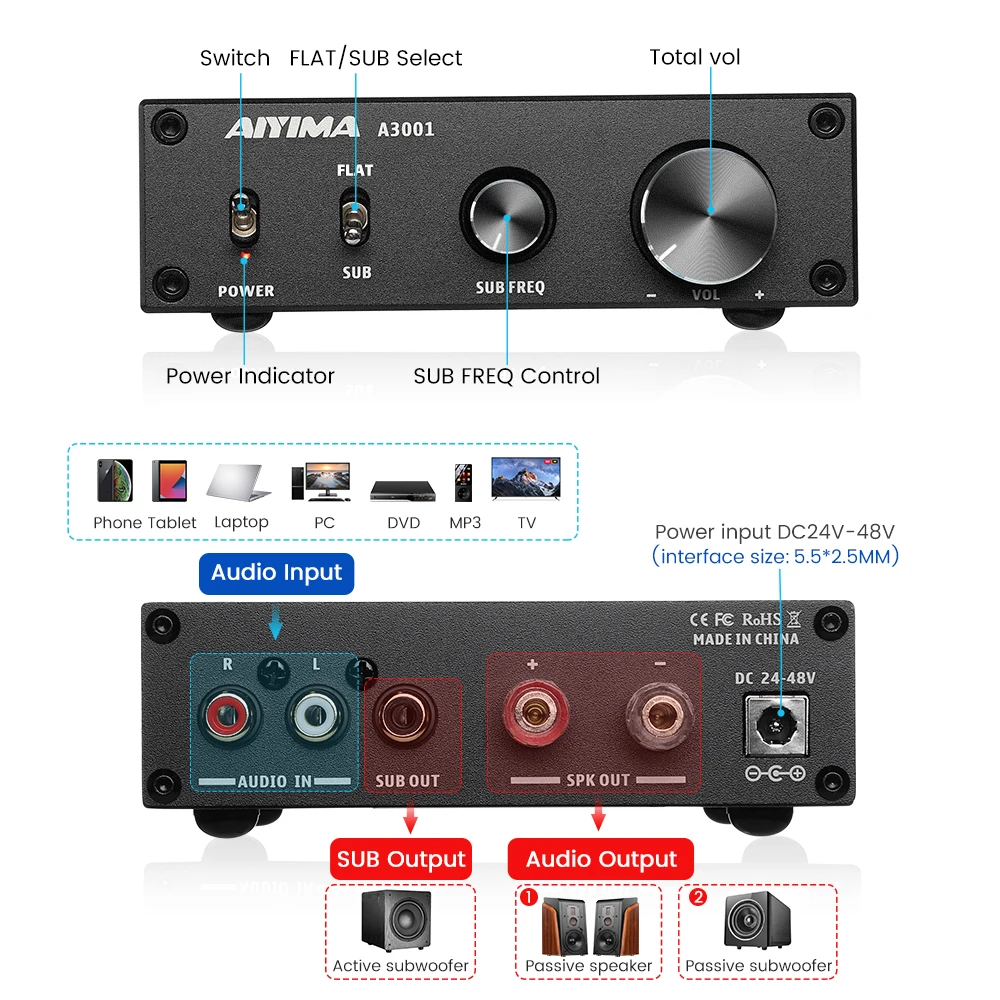AIYIMA Audio A3001 TPA3255 Усилитель сабвуфера 300 Вт HIFI Усилитель динамика Моно Усилитель мощности звука класса D Домашний аудиоусилитель