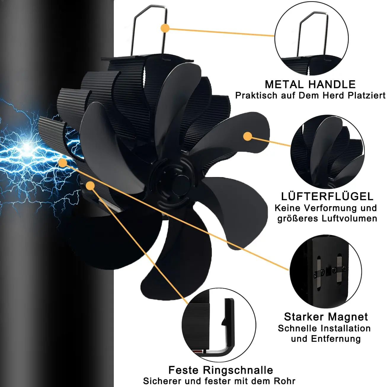 Магнитный вентилятор для дровяной горелки, регулируемый зажим для вентилятора печи, вентилятор для камина с тепловой мощностью, бесшумный вентилятор для дымохода, подвесной вентилятор из дымовой трубы, дерево