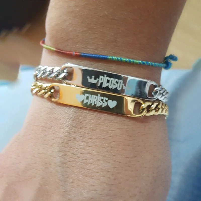 Браслет из нержавеющей стали с гравировкой имени для мужчин, персонализированная