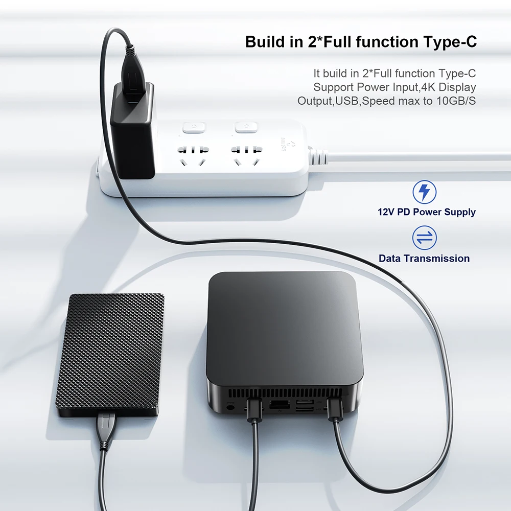 Chatreey Mini PC T9 N100/N200 WIFI5 Windows 11, ультрамаленький карманный компьютер, двойной SSD, полнофункциональный выход Type-C, 4K, 60 Гц, RGB