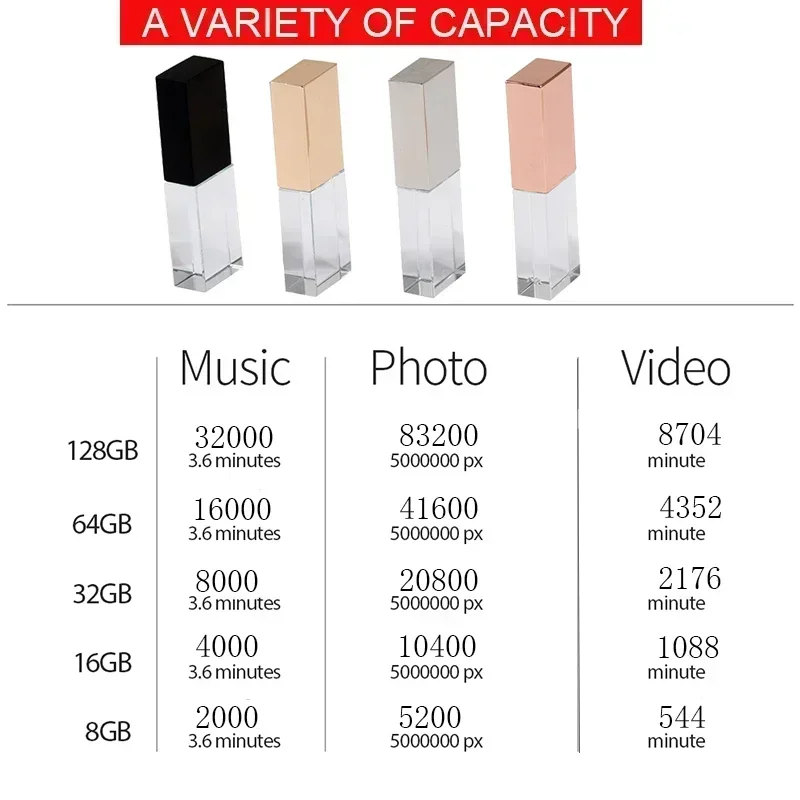 Флешка JASTER Crystal USB 2.0 128 ГБ, креативные свадебные подарки, ручка-накопитель 64 ГБ, 100% настоящая емкость, бесплатный индивидуальный логотип, 32 ГБ