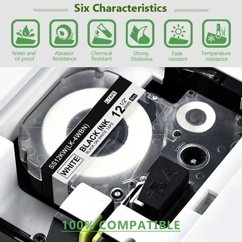 Plavetink, 1 шт., лента для этикеток SS12KW, совместима с EPSON LW-300 LW-400 LW-600P LW-700 LC-4WBN9, принтер для этикеток 12 мм * 8 м, черный на белом