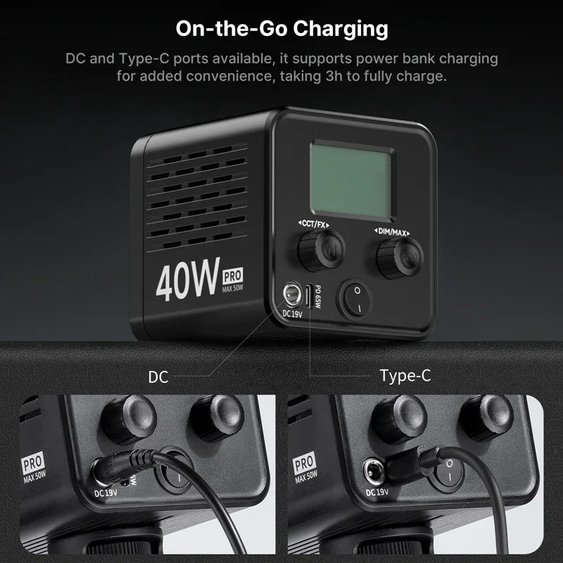 Ulanzi L023 40 Вт Pro Портативный светодиодный светильник для видеосъемки, двухцветный COB, студийный светильник 2500–6500 К, 3400 мАч для прямой трансляции видео