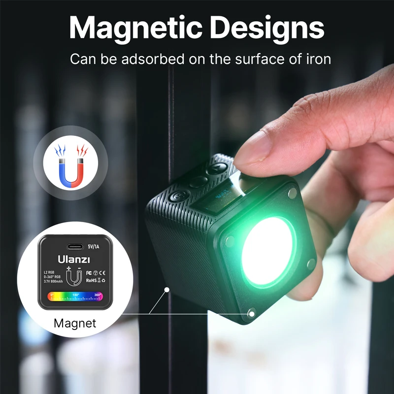 Видеолампа Ulanzi L2 RGB Mini COB 360° ° Полноцветный магнитный свет с диффузором для DSLR-камеры Lightning Photography Vlog Live