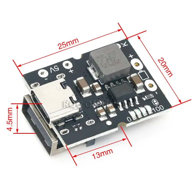 Повышающий преобразователь USB Type-C, 5 В, 2 А, повышающий силовой модуль, защитная плата для зарядки литиевой батареи, светодиодный дисплей, USB для зарядного устройства «сделай сам»