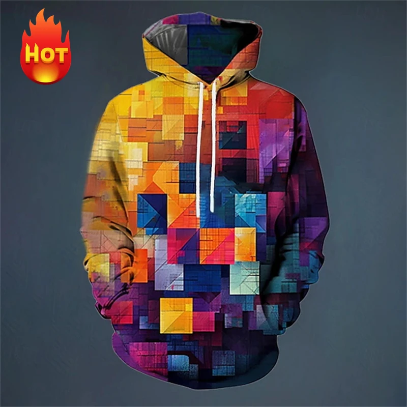 Y2K Мужская толстовка с 3d имитацией строчки в клетку с принтом Толстовки с капю