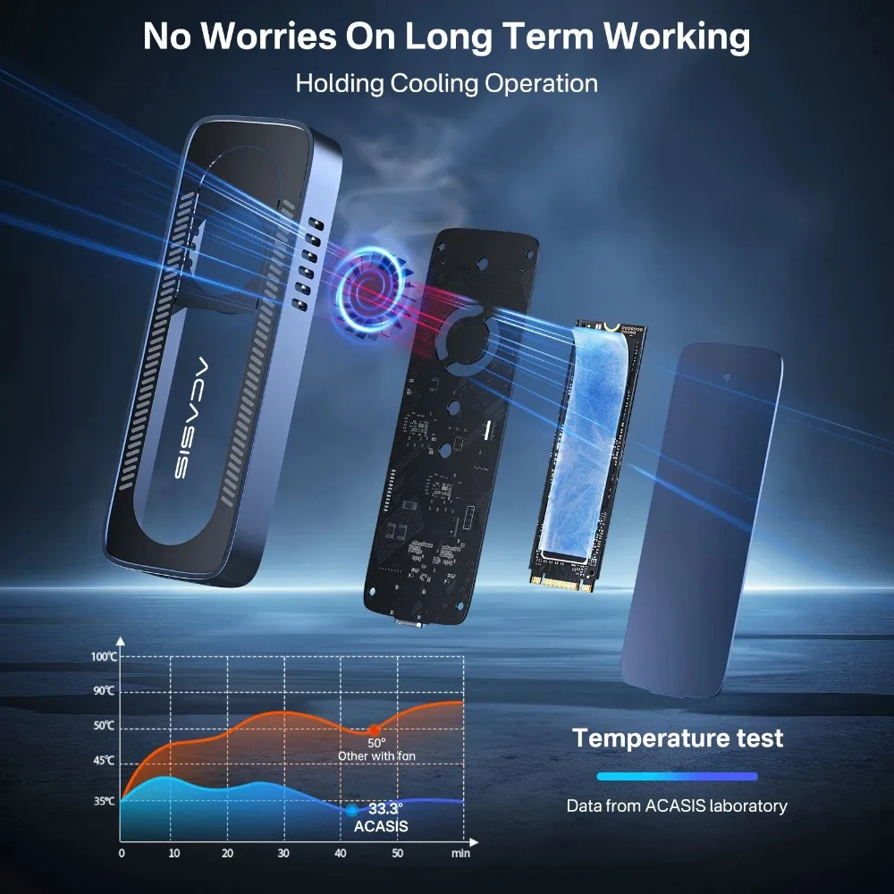 Корпус ACASIS 10 Гбит/с M.2 NVME SSD Встроенный охлаждающий вентилятор Type-C M2