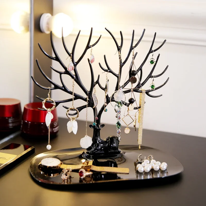 Подставка для ювелирных изделий Поднос Дерево Стеллажи для хранения Серьги Ожерелья Кольца Шкатулки для драгоценностей Чехол Настольный органайзер Держатель Декор для макияжа