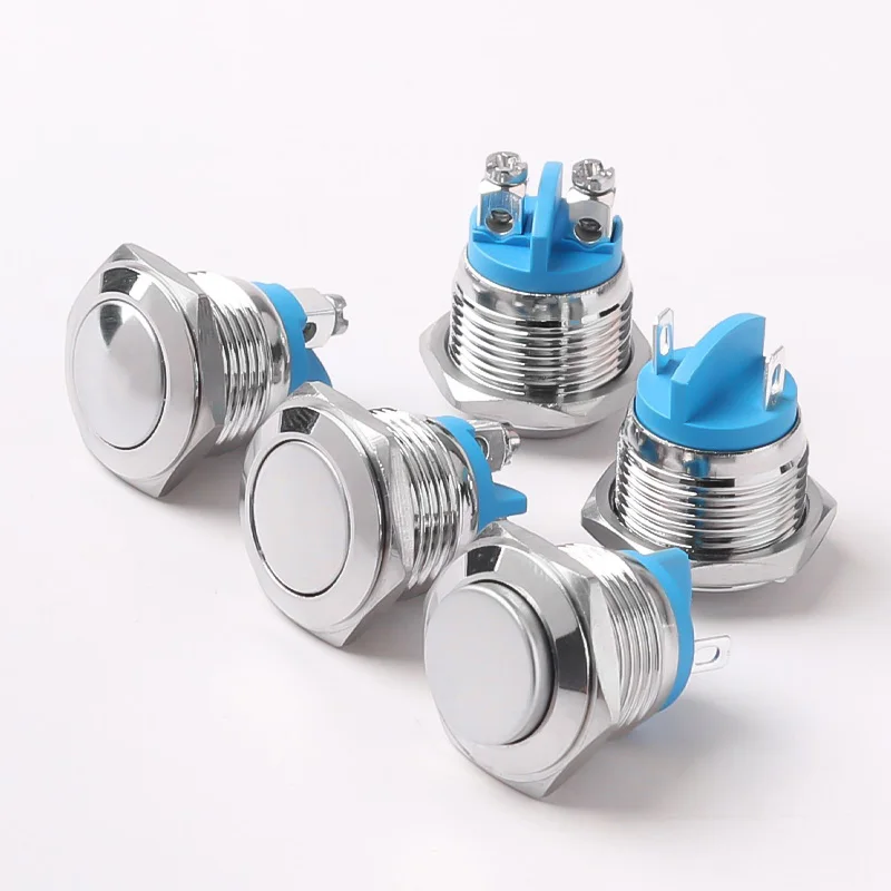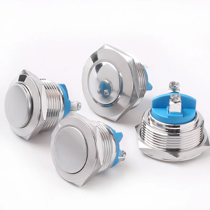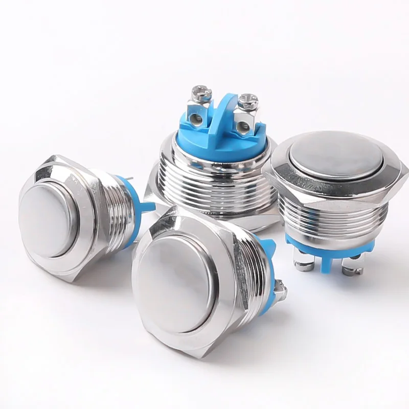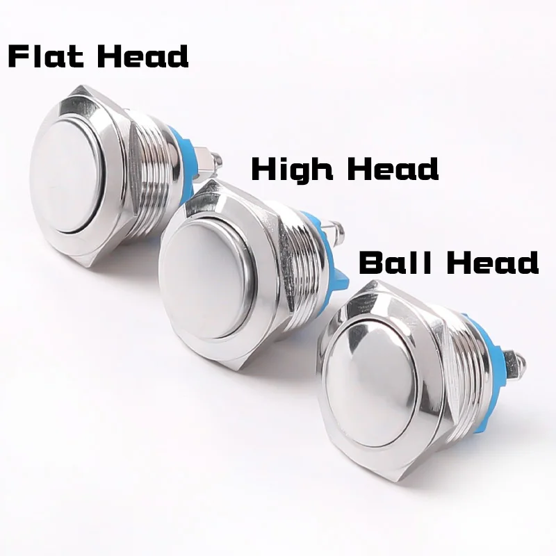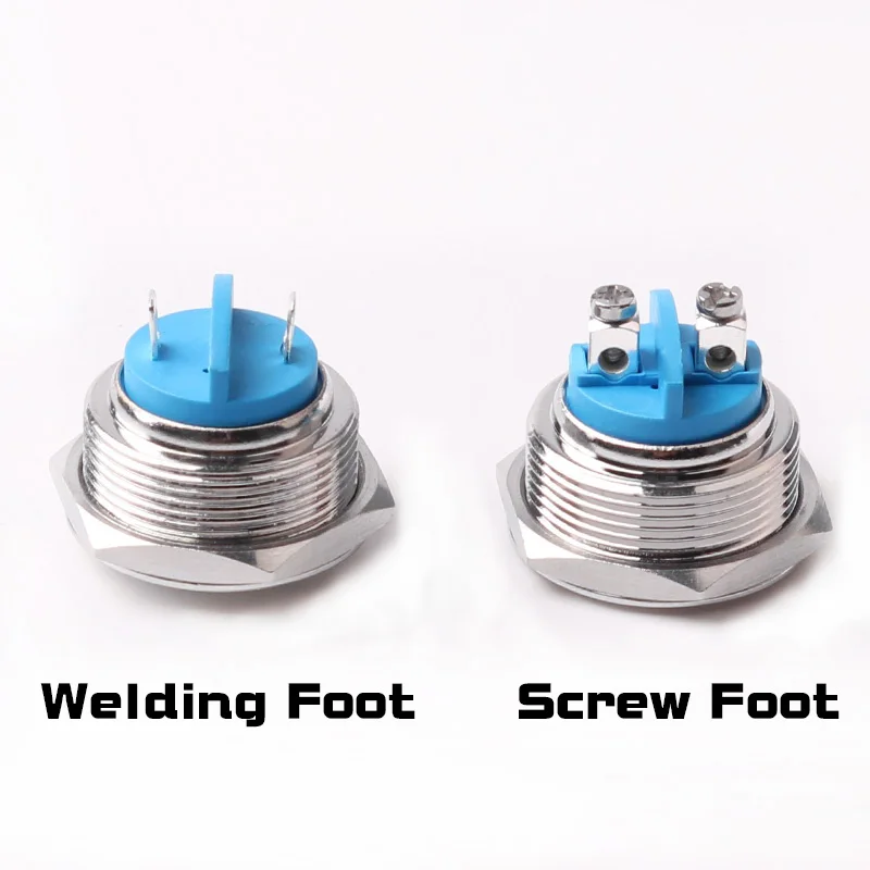 Металлическая кнопка, 16 мм, 19 мм, 22 мм, металлическая кнопка, Сварочная ножка, высокая/плоская/шаровая Головка, 1NO, мгновенный водонепроницаемый переключатель