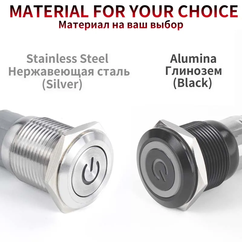 16, 19, 22 мм с проводом, водонепроницаемый металлический кнопочный переключатель, светодиодное кольцо/силовой светильник с мгновенной фиксацией 5/12/24/220 В, серебристый1NO1NC