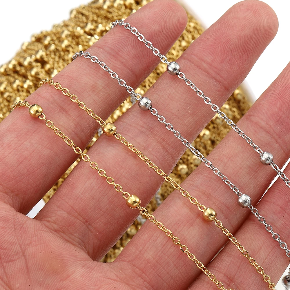 Не выцветает, 2 метра, 1 метр, бусины из нержавеющей стали, цепочки для изготовления ювелирных изделий, ожерелье, браслет, аксессуары, шариковая цепочка ручной работы