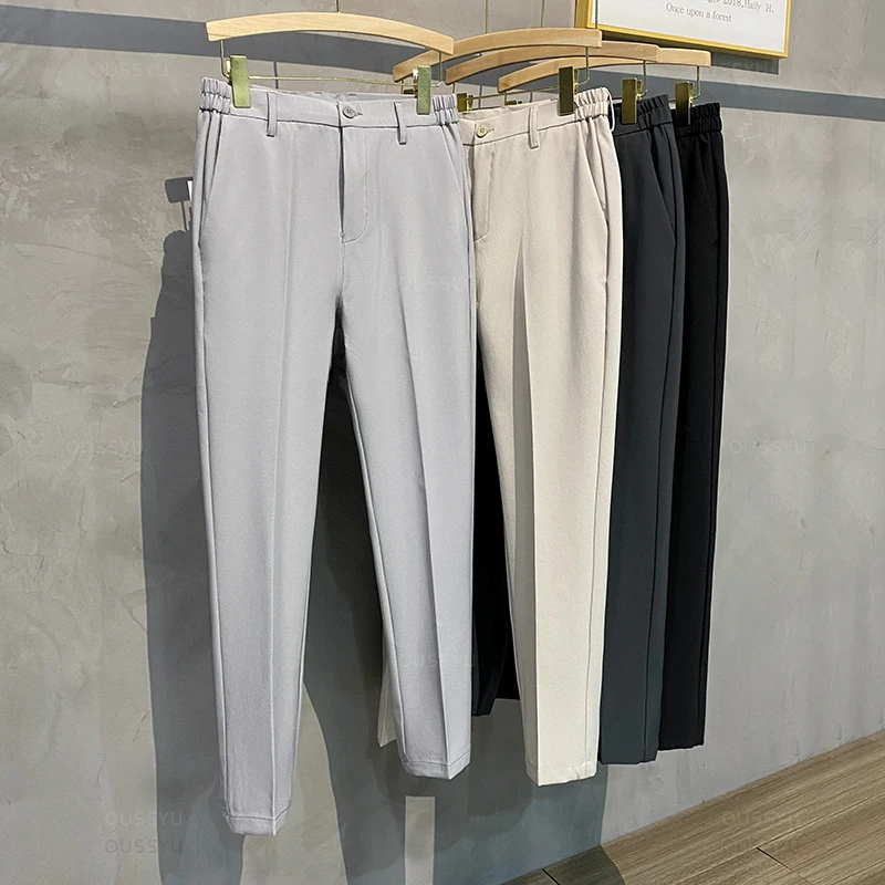 2024, осень-зима, мужские повседневные брюки, костюм, брюки, облегающие рабочие брюки с эластичной резинкой на талии, деловые брюки для бега, мужские, черные, большие размеры 40 42