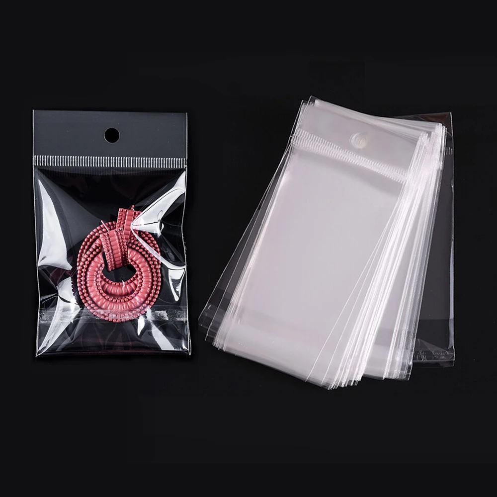 50/100 шт. прозрачный самоклеящийся пластиковый пакет с отверстием для подвешивания, закрывающийся пакет OPP для подарочной упаковки, упаковка для розничной торговли ювелирными изделиями