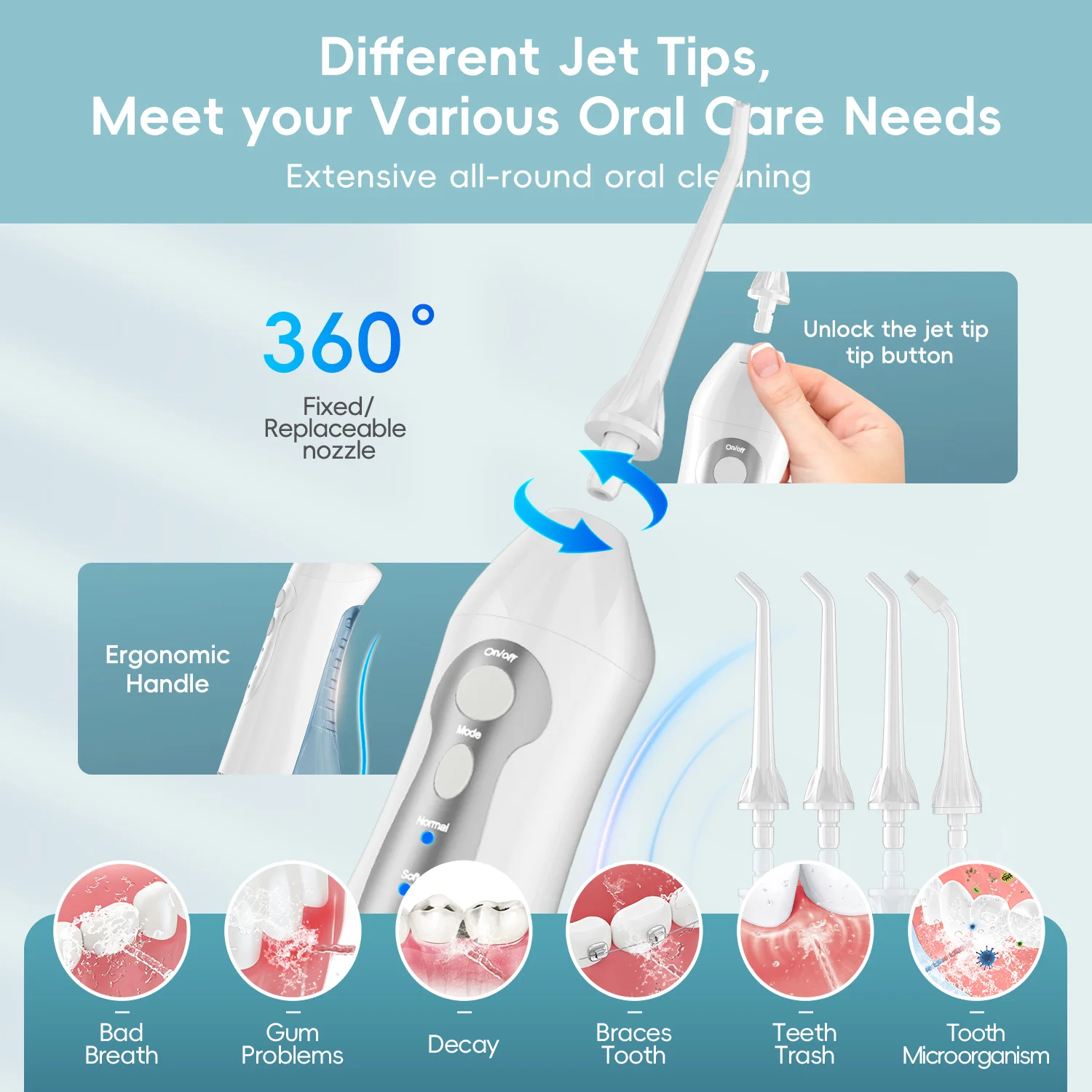 Стоматологический ирригатор для полости рта, перезаряжаемый ирригатор для воды, портативный, 300 мл, 4 насадки, стоматологическая струя воды, водонепроницаемый очиститель зубов, водонепроницаемый очиститель для зубов