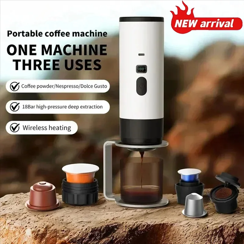 Беспроводная электрическая портативная кофемашина для эспрессо, дорожная кофеварка с беспроводным подогревом для автомобиля, дома, кемпинга, капсульный порошок