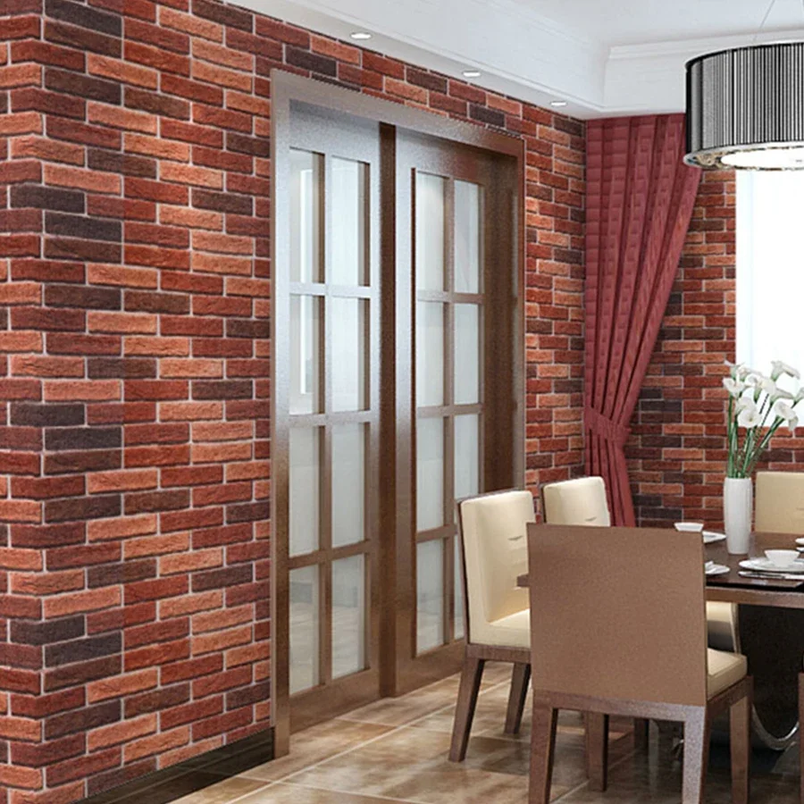Красный кирпич, влагостойкая водостойкая наклейка для ремонта, ПВХ, самоклеящаяся отделка комнаты, спальня, кабинет, фон, настенные обои