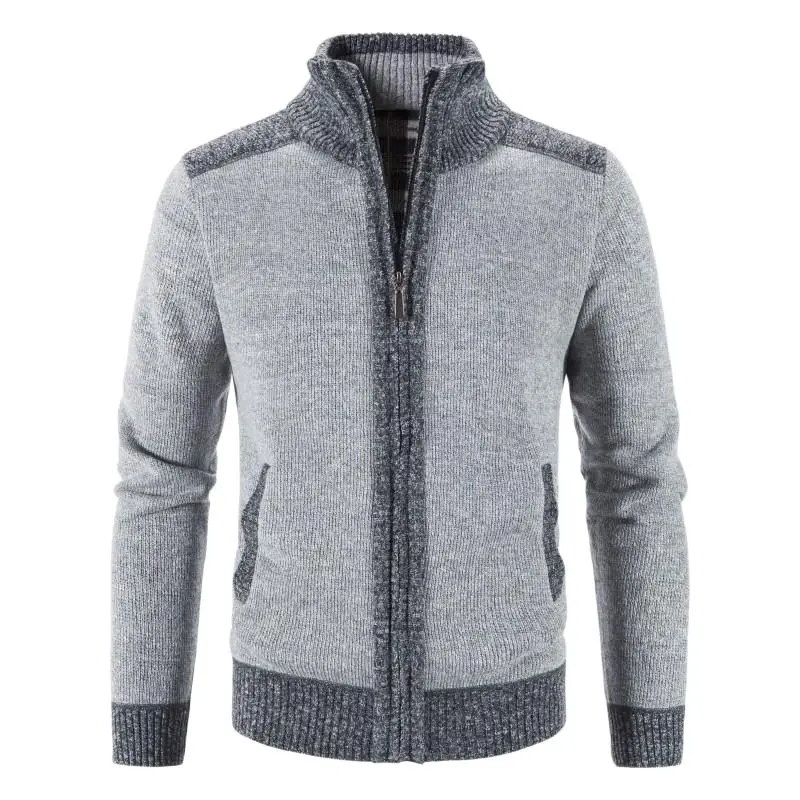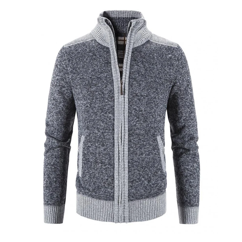 Новая зимняя мужская лоскутная куртка, вязаное пальто, модный кардиган, верхняя одежда, повседневные толстые тонкие теплые пальто на молнии с длинными рукавами