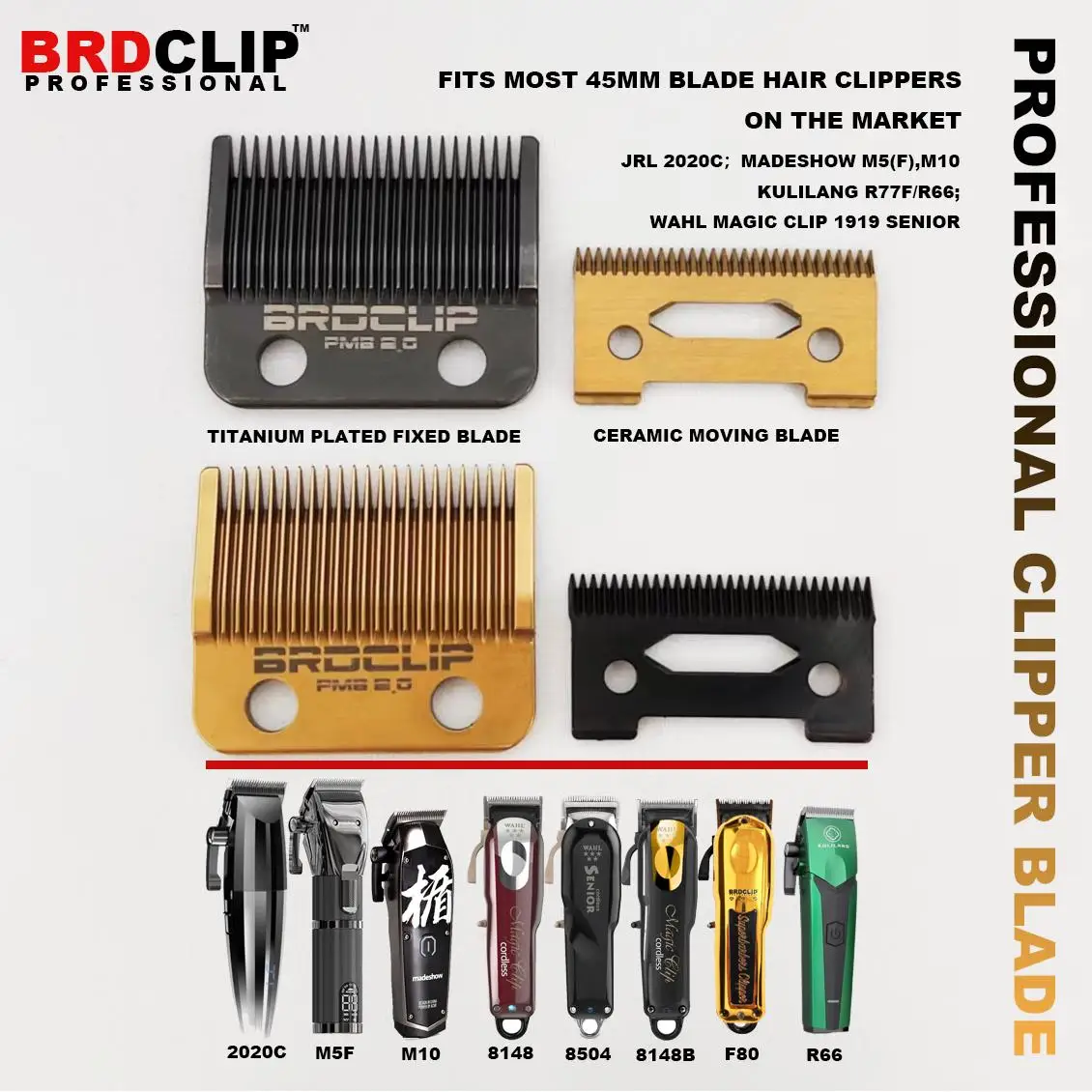 Лезвие BRDCLIP, оригинальная сменная режущая головка для машинки для стрижки волос 2020C Madeshow M10 M5, керамическое лезвие с титановым покрытием