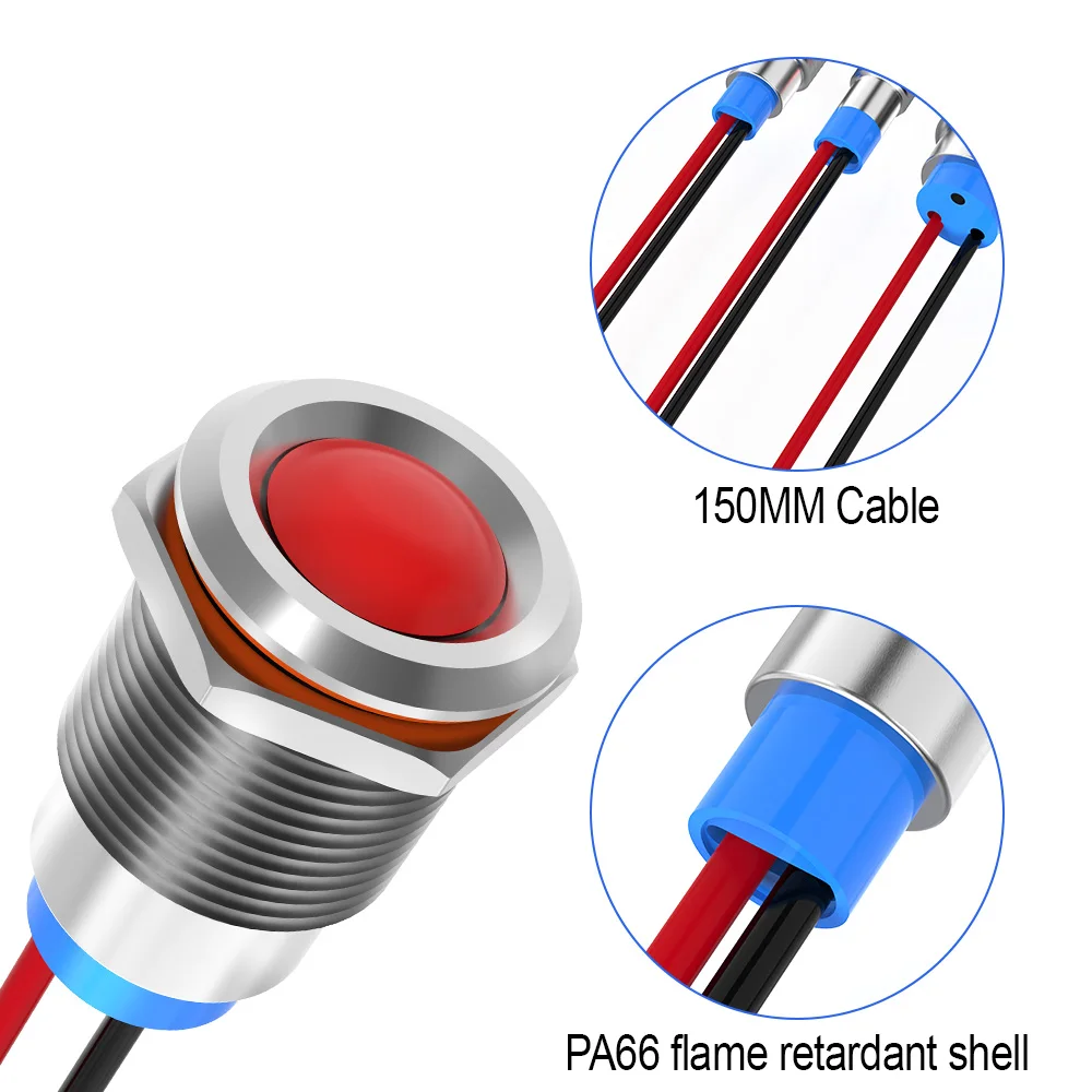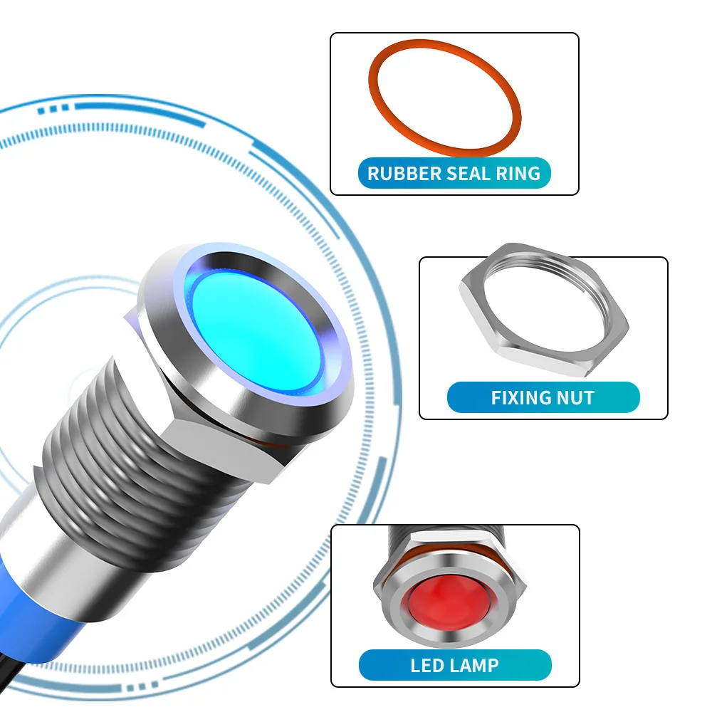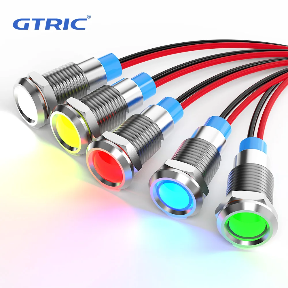GTRIC светодиодный металлический индикатор, 5 шт., сигнальная лампа, контрольные провода, переключатель 6/12/24/36/110/220 В, провод для подключения красного, желтого, синего, зеленого, белого цвета