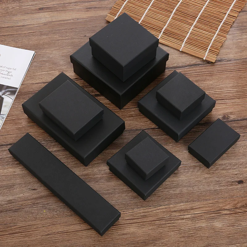 12 шт картонная коробка для набора ювелирных изделий коробка для кольца ожерелья прямоугольник желтовато-коричневый черный 5X5X3 см 7x9x3 см 9x9x3 см дорожный органайзер для ювелирных изделий чехол